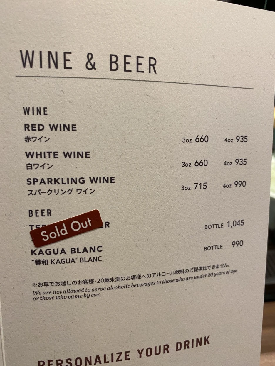 긴자 식스 스타벅스 리저브 바(Ginza 6 Starbuck Reserve Bar)에는 와인 3종, 맥주 2종이 구비돼있다.