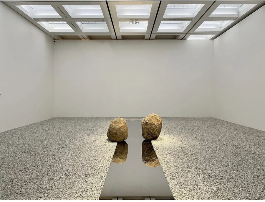 작가의 유명 설치 작품 중 하나인 이 작품을 볼 때면 바위가 유리와 부딪치는 순간의 광경이 궁금해진다.