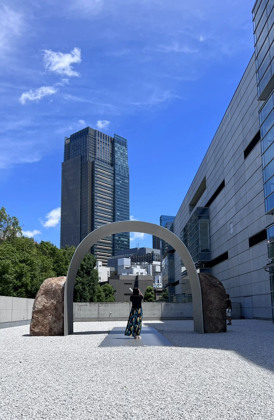 작렬하는 8월의 태양 아래 우뚝 선 5미터 높이의 관계항-아치는 신국립 미술관의 야외 전시장을 신비의 기운으로 가득 채웠다. 작가가 일본 어느 시골의 숲길을 걷다 아치형으로 늘어선 나무들을 보고 영감을 얻었다는 이 작품은 10미터 길이의 스테인리스 판이 길게 놓여 있고 중앙에 5미터의 아치, 그리고 아치의 좌우에 비슷한 모양의 대형 바위로 장식돼있다.