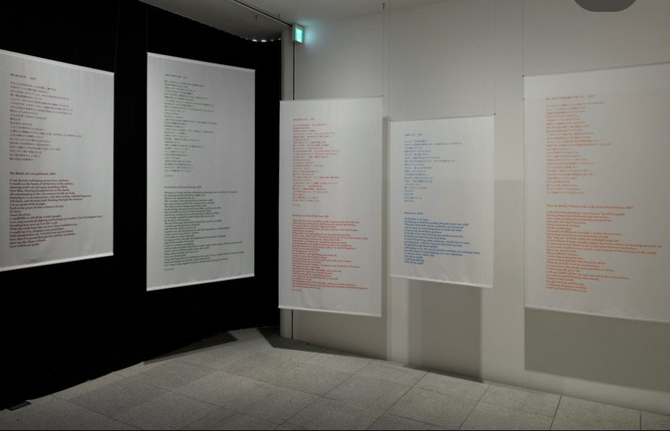 쿠사마 야요이는 자신의 왕성한 창작욕을 그림으로만 표출하지는 않는다. 90을 훌쩍 넘은 고령의 작가는 그림만큼 글을 좋아해서 읽기와 쓰기 또한 그녀의 주요 일과다. 이렇게 해서 쓰인 시의 양도 많아 여러 권의 시집으로 출간되기도 했다. 2층에는 사랑을 위해 기도하는 그녀의 시도 몇 편 아카이브 성격으로 전시되어 있다.