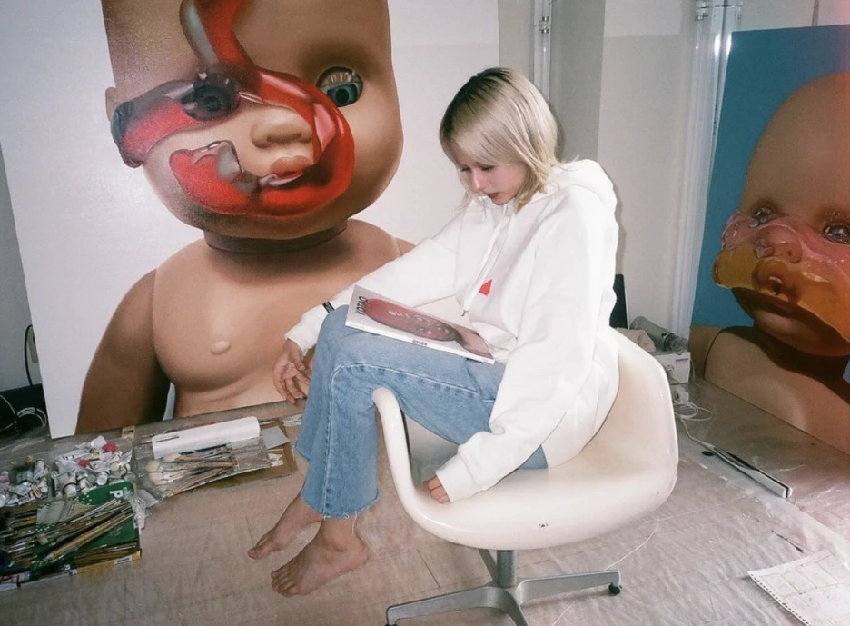 그녀의 작품을 처음 보면 살짝 당혹스러울 수도 있다. 그도 그럴 곳이 아기나 성숙한 여인(모두 자신의 캐릭터)의 얼굴과 몸에 무언가 끈적이는 액체가 뒤 덥혀있는 모습이 하이퍼리즘으로 표현되어 있어 강렬한 첫인상을 주기 때문이다.