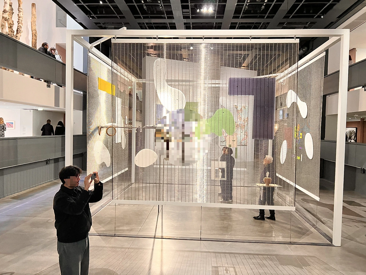 그런데 전시장 내부의 곳곳에 위와 같은 도르래, 체인(?)으로 보이는 기계 설비가 눈에 띄었다. 관람 당시는 이게 뭐 하는 건가? 하고 의구심만 떠 올려보고 말았는데, 나중에 알고 보니 카르티에 파운데이션의 내부는 층고를 11미터까지 조절할 수 있게 디자인되었다고 한다. 즉 전시가 바뀔 때마다 그 성격에 맞추어 내부에 새로운 층들을 조성할 수 있는 '실내를 떠다니는 미술관'인 것이다.