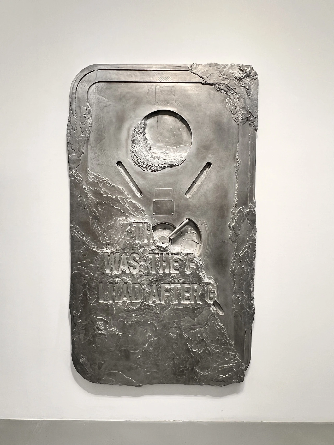 잠수함 혹은 배의 문을 실제 알루미늄을 사용하여 만든 대형 작품이 캔버스 작품처럼 벽에 걸려 전시되어 있었는데 개인적인 공간과 자금 사정이 허락된다면 당장이라도 집에 들이고 싶어질 말끔 매혹적인 작품이다.