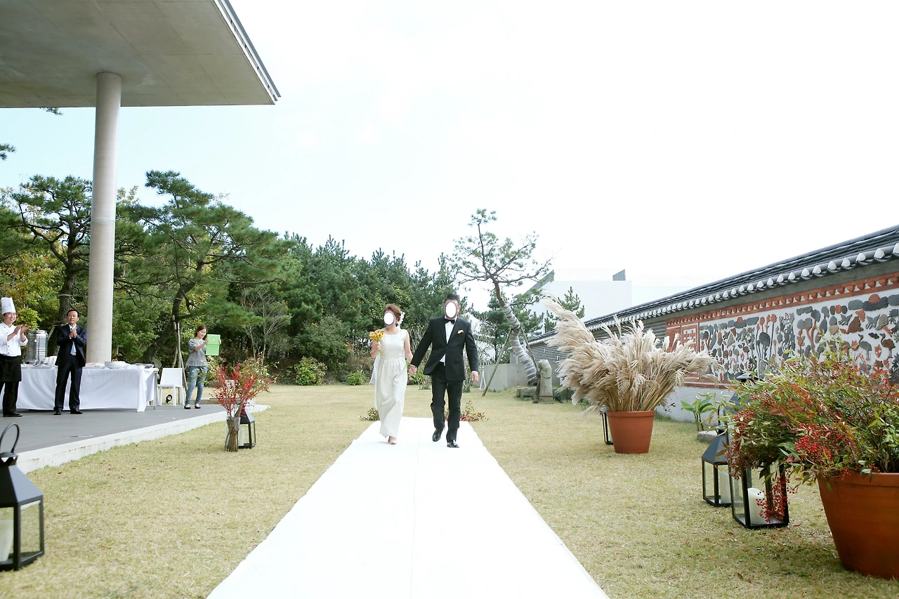 그녀의 전시가 한창인 본태 박물관의 아름다운 야외 정원에서 멋들어진 웨딩 마치가 그것인데, 그 주인공은 바로 마누라상과 나였다. 물론 쿠사마 할머니가 하객으로 참석하지는 않았지만, 그녀의 대형 작품들이 가득 들어찬 곳에서의 로맨틱한 웨딩 마치였다.