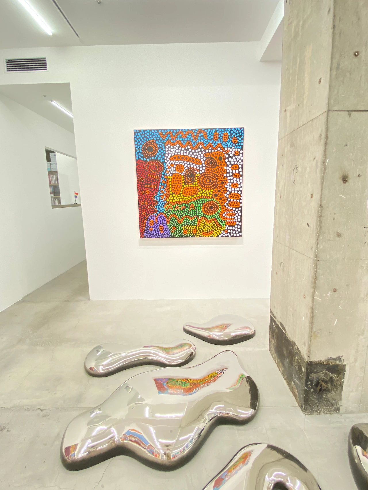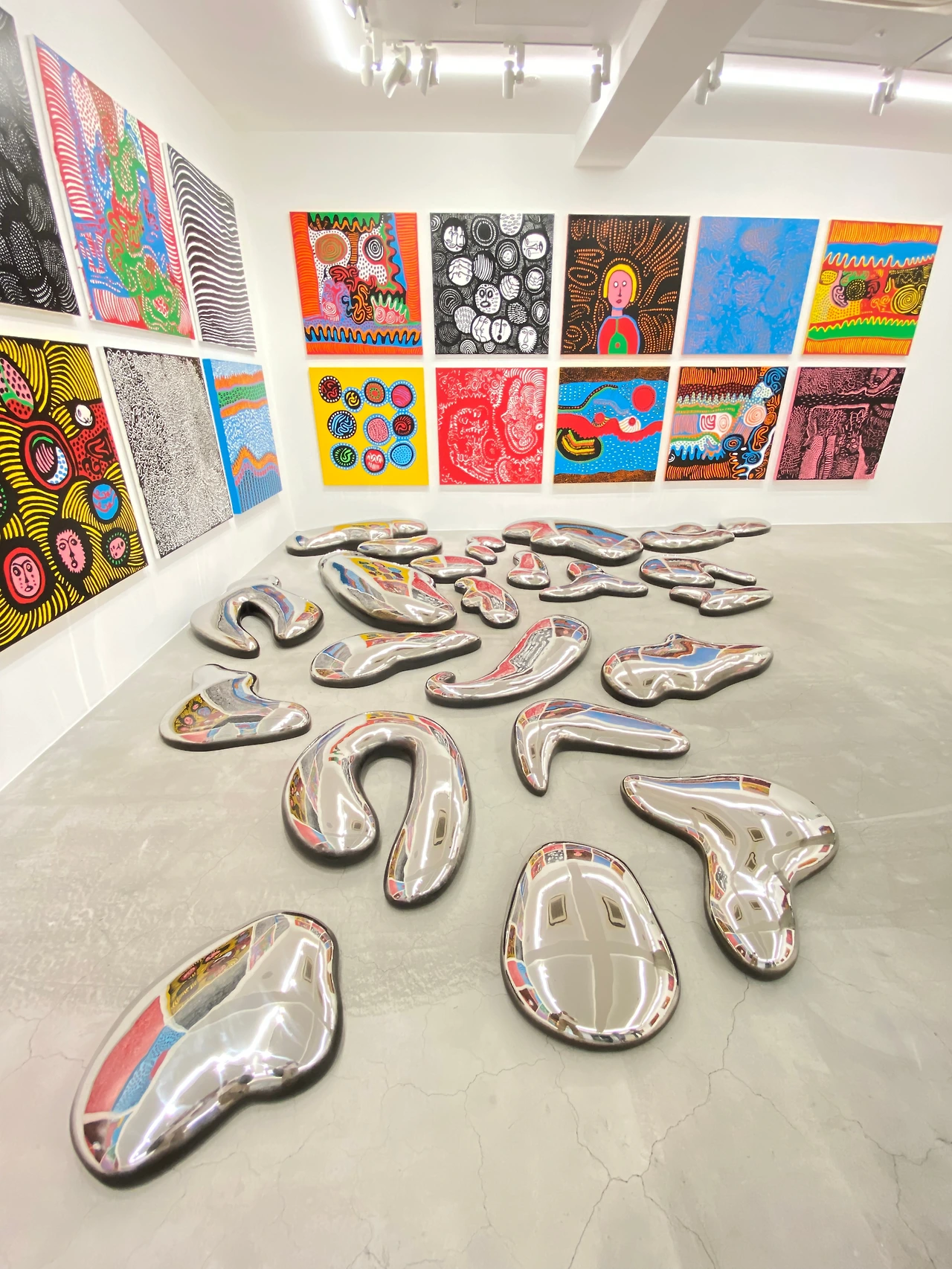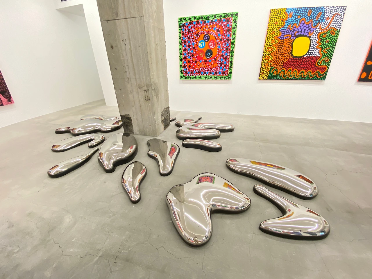이번 전시에는 회화 작품 외에 나르시스 가든처럼 반짝이는 스테인리스 설치 작품인 CLOUD도 선보였는데 총 99피스가 한 작품으로 3개의 에디션을 가진 작품이다. 무려 19억 원에 달하는 이 작품 중 2개의 작품은 뉴욕과 인도의 소장가에게로 떠났고 남은 한 세트의 작품이 이번 전시에 선보였다.
