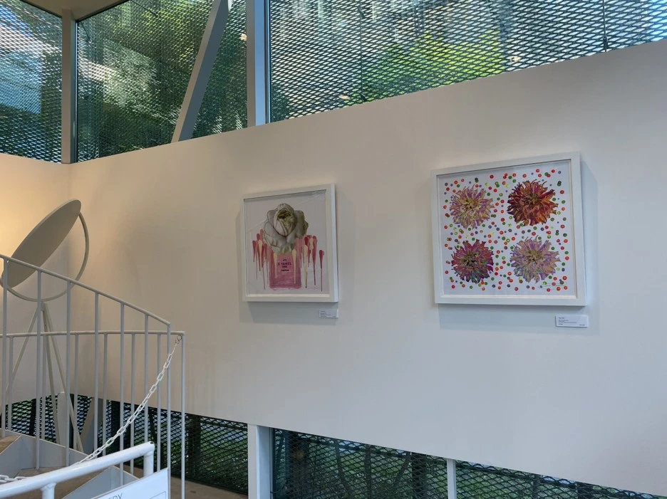 친절한 큐레이터 토모코상이 작품과 작가에 관하여 열심히 설명해 주셨다. 이 그림들은 작가가 찍은 사진 위에 아크릴 물감으로 꽃과 식물의 모티브를 그려 넣어 완성한 작품이라고 한다. 로버트 인디애나 LOVE의 오마주인듯한 작품 등 꽃을 그려 넣은 작품들이 향기롭다. 작품 가격은 우와~~그의 명성만큼이나 높다. 작품가가 50~70만 엔! 감상으로 대리만족~