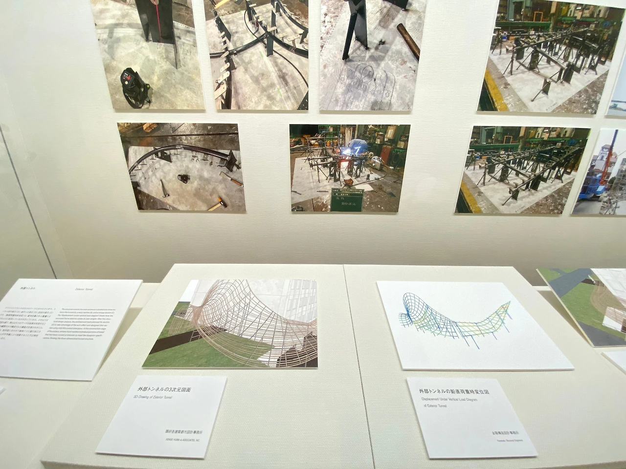 2층은 쿠마 켄고의 건축을 전시한 공간이다. 건축의 모형도와 설계 당시의 스케치, 실제 사용된 자재들과 건축과정을 담은 사진들이 전시되어있다. 특히 쿠마 켄고의 손이 거쳐 가기 전후의 사진들이 눈에 띄었는데 여고 괴담에서 나올법한 건물을 현재의 모습으로 바꾸어 논 것을 보니 건축의 힘이란 참 대단한듯하다.