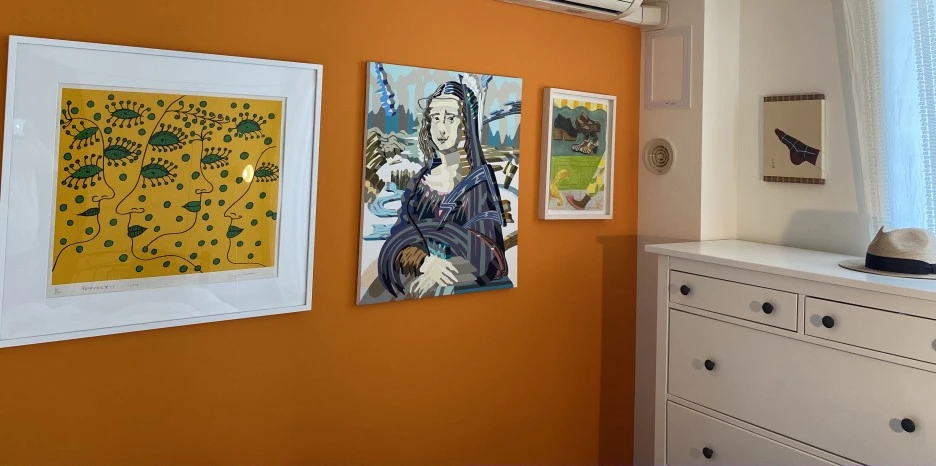 집에 가져와 침실 구석에 걸었는데 마침 마리아 파라(Maria Farra)의 작품 속 등장하는 구두들과 주인공의 신발과 잘 어울린다. 이 '발아'를 보고 있으면 가끔 '나도 무언가 엉뚱한 상상을 해볼까나~'하고 생각해보게 되어 즐겁기도 하다.