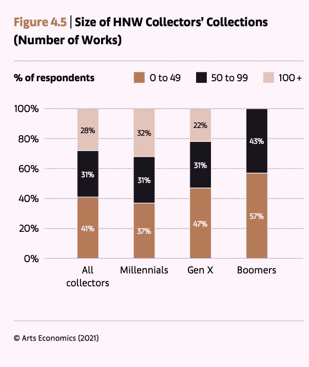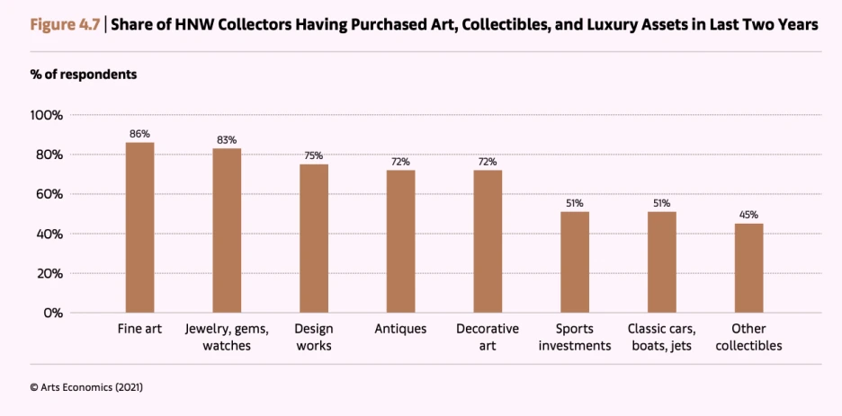 2020년도 팬데믹 위기에도 전년대비 10%의 컬렉션 관련 지출 증가가 있었으며 2021년 상반기에는 42%가 증가해 평균$242,000의 지출을 기록했다.