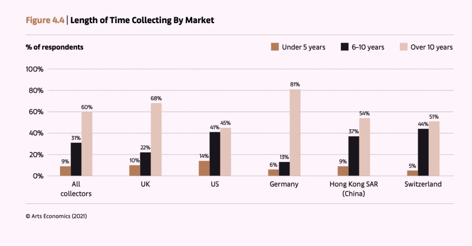 독일이 10년 이상 컬렉션을 해오고 있는 집단이 가장 많으며, 6~10년의 컬렉터는 스위스가, 신흥 컬렉터군은 미국에서 가장 높은 수치를 기록