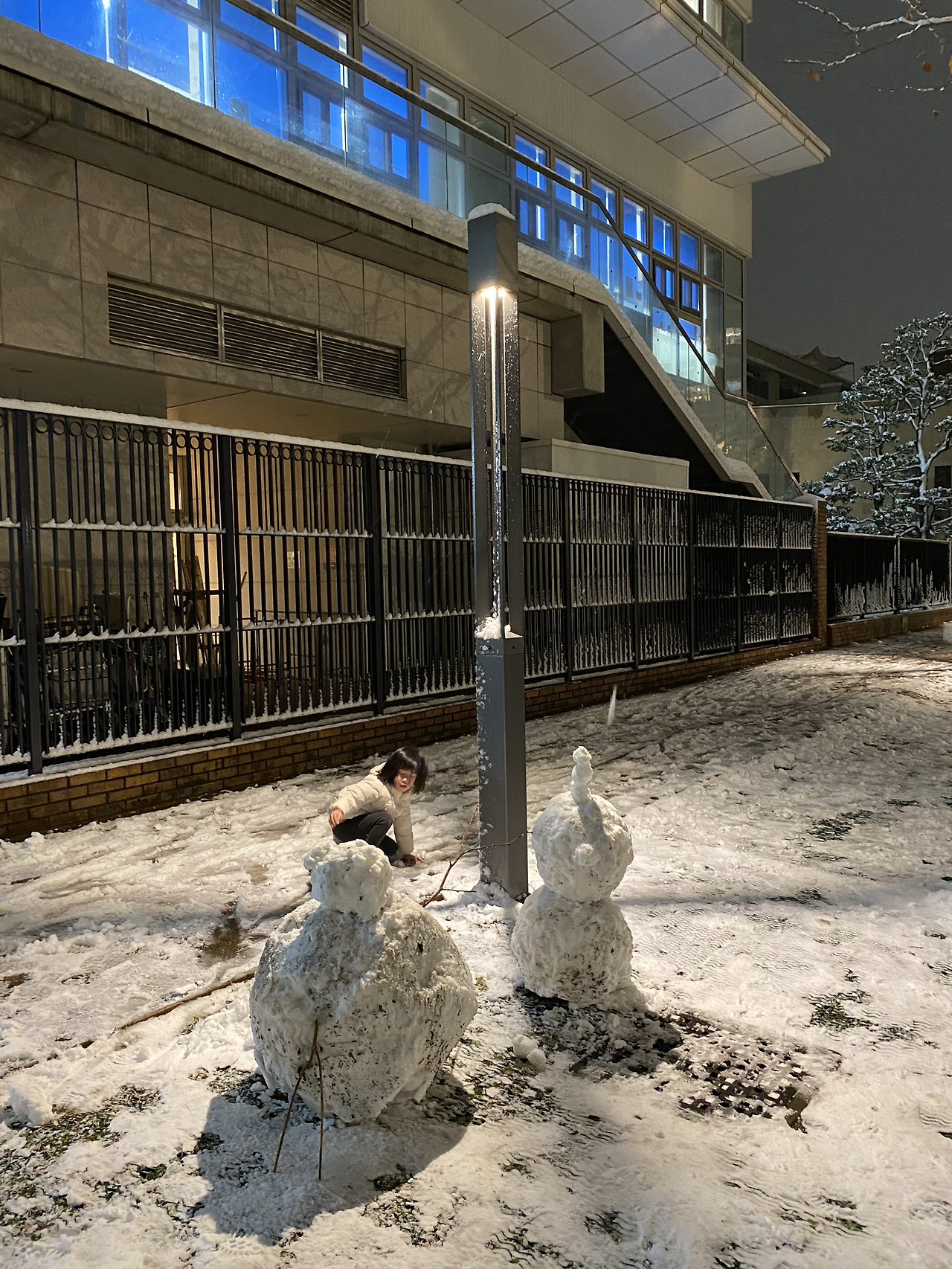 어둠이 내리고 눈발이 약해지니 집 앞 작은 공원으로 사람들이 하나둘 몰려들어 눈사람을 만들거나 눈싸움을 하며 도쿄에서 귀하디 귀하신 쌓인 눈을 즐기기 시작했다.