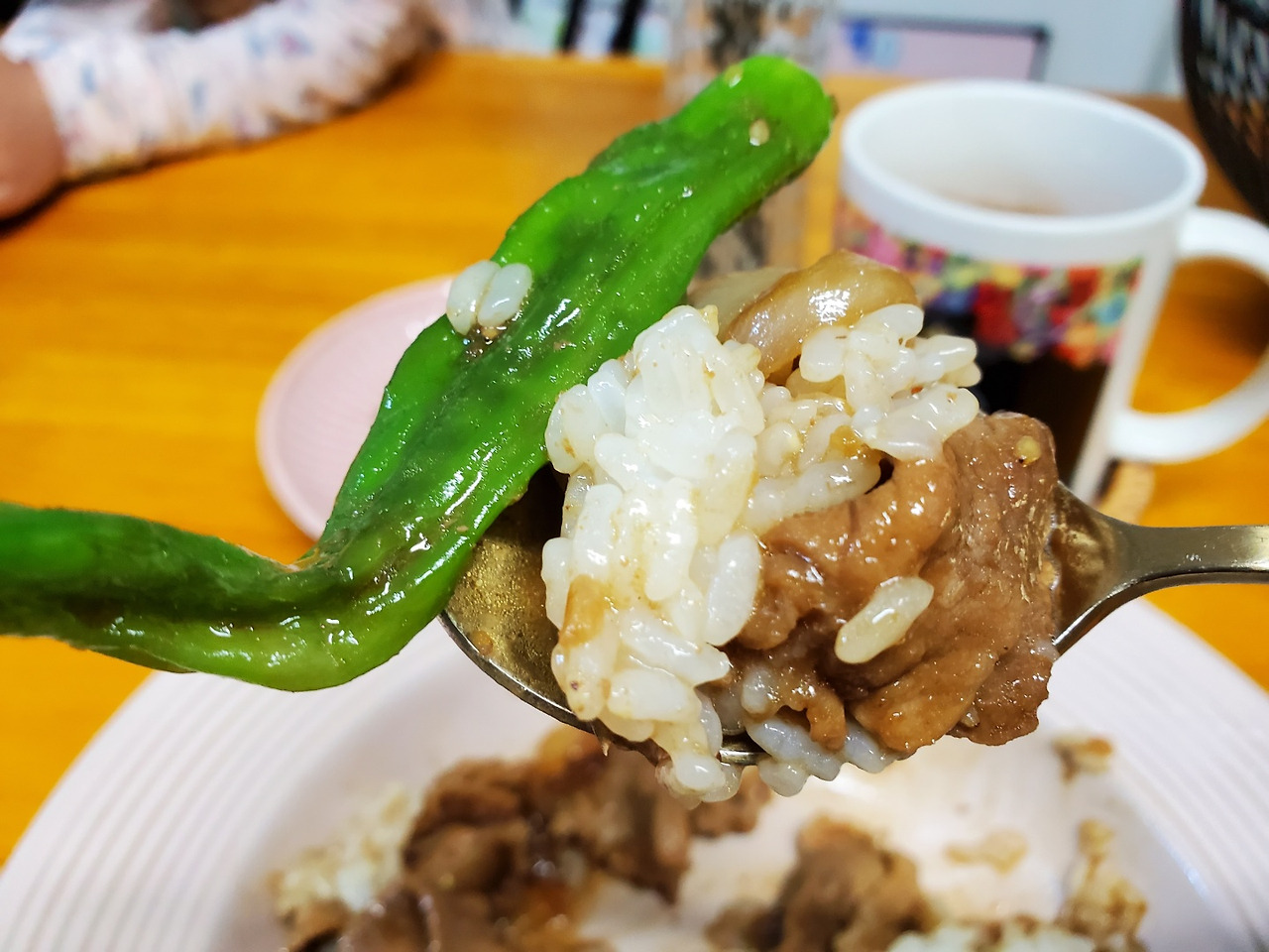 아이는 이미 카레에 식사가 끝났고 혼자 먹으면 되는 식사시간.