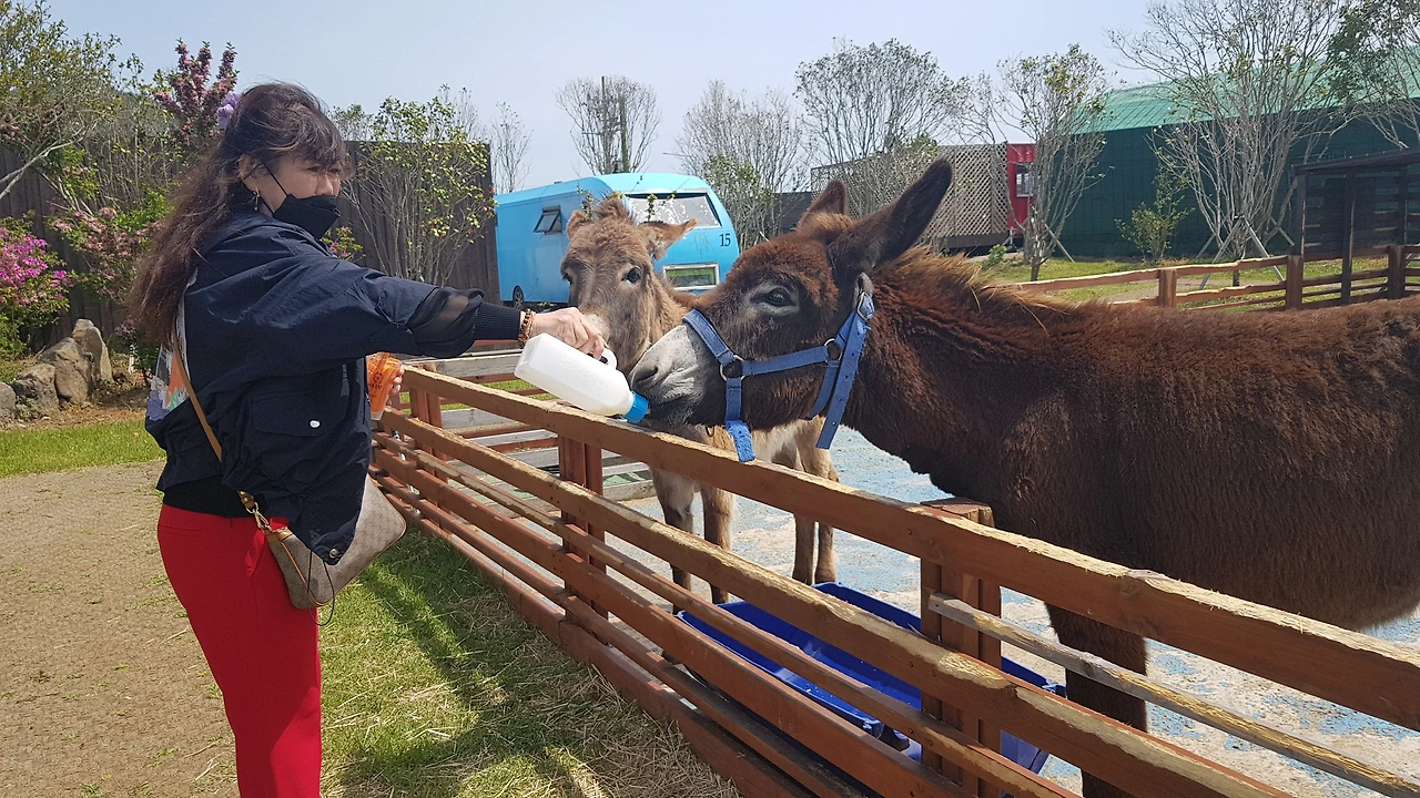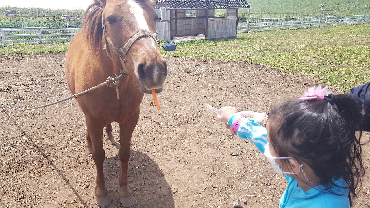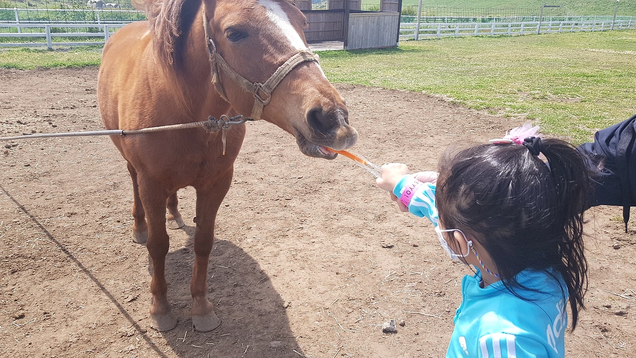 '분유 주세요' 앞에 서니 말 두 마리가 서 있었다. 분유를 먹기 위해 우리를 기다리는 것처럼 안쓰러운 눈빛을 발사했다. '이때 분유 두 개를 사야 하는 거구나!' 느끼게 한 장면을 목격하고 말았다.