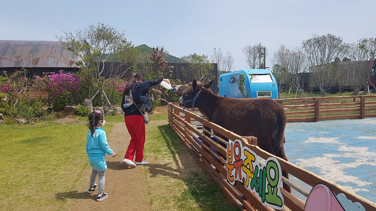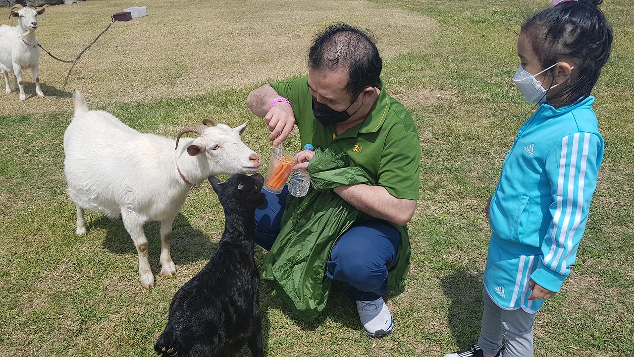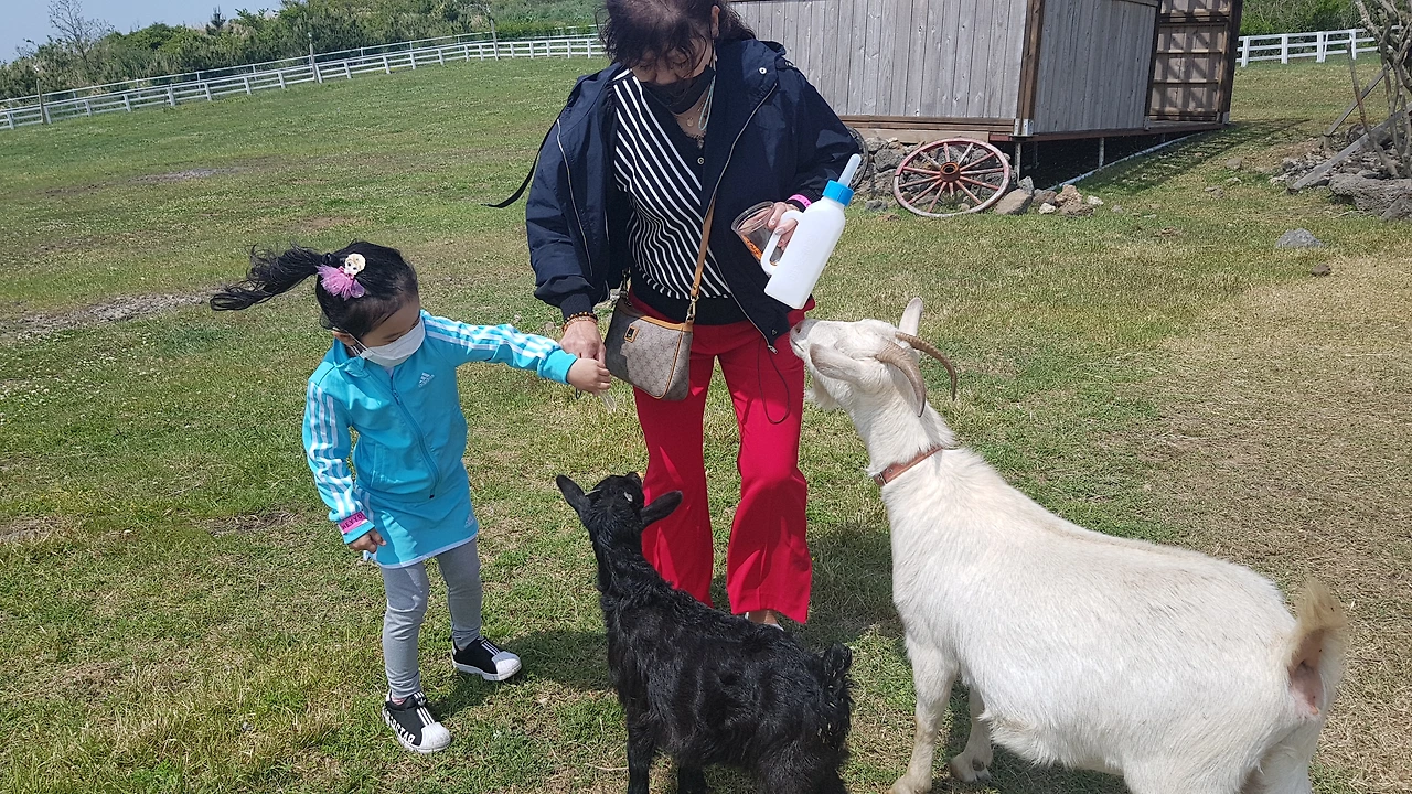 새끼 염소는 먹이를 먹기 위해 사람들 곁으로 다가왔고 아이는 무섭다고 요리저리 뛰어다니는 것이 아수라장도 이런 아수라장이 없었다. 엄마는 영상 촬영에 사진 찍기 바쁘고 할머니와 할아버지는 동물들 보러 다닌다고 어린 손녀는 뒷전이 되었던 제주도 첫 관광.