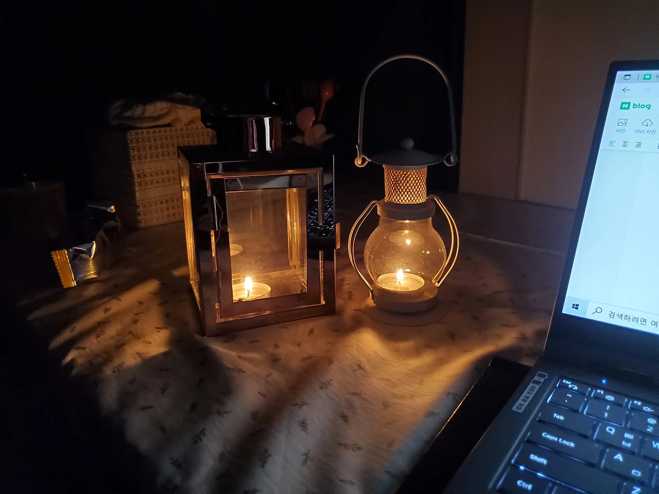 초와 감성 램프가 있다. 힘들었던 삶에서 빛을 바라보며 쓰린 가슴을 쓸어내린다.