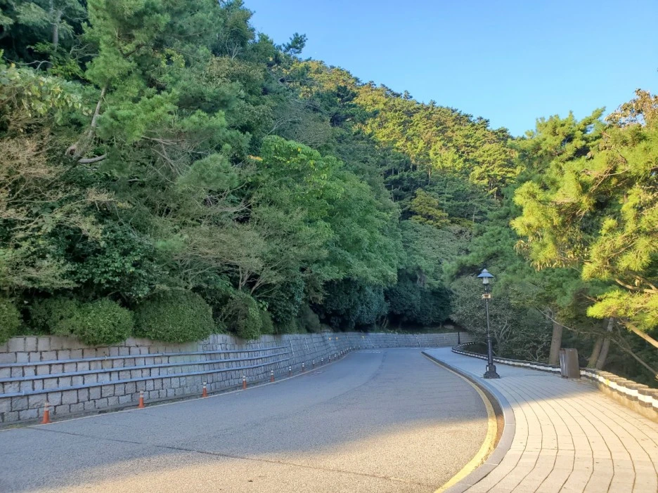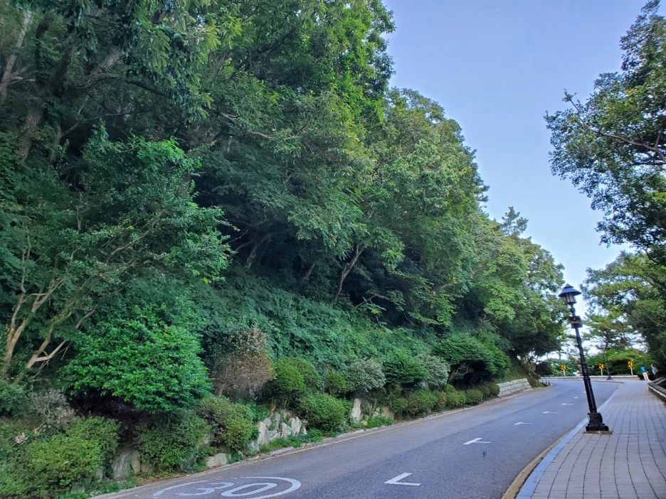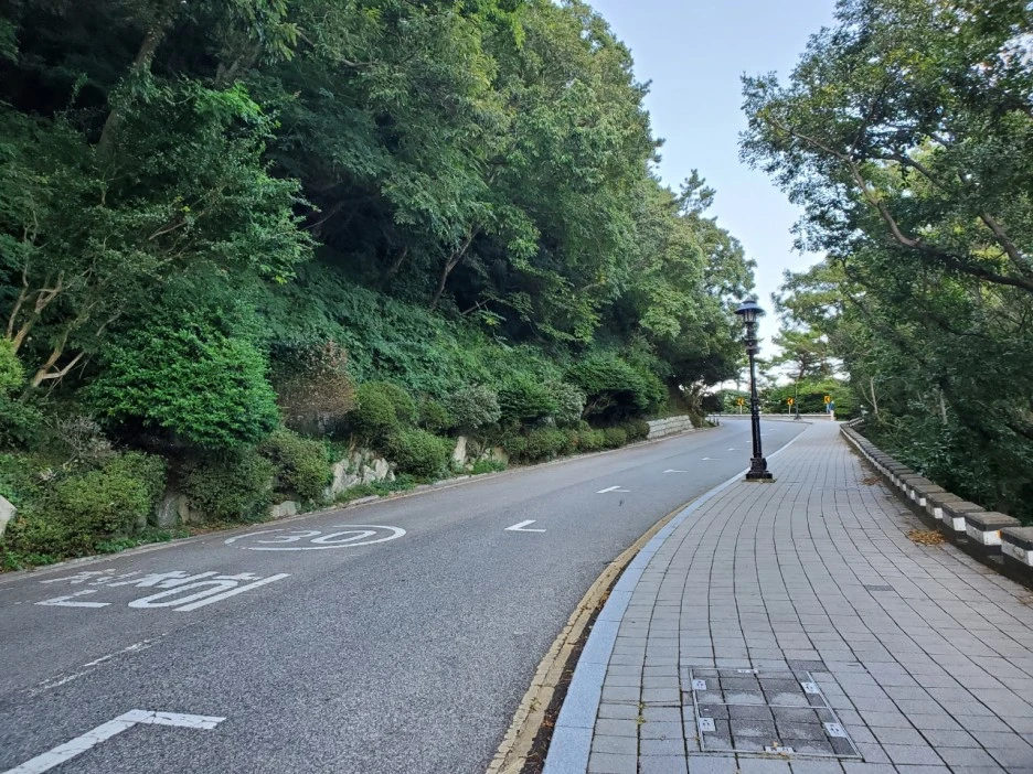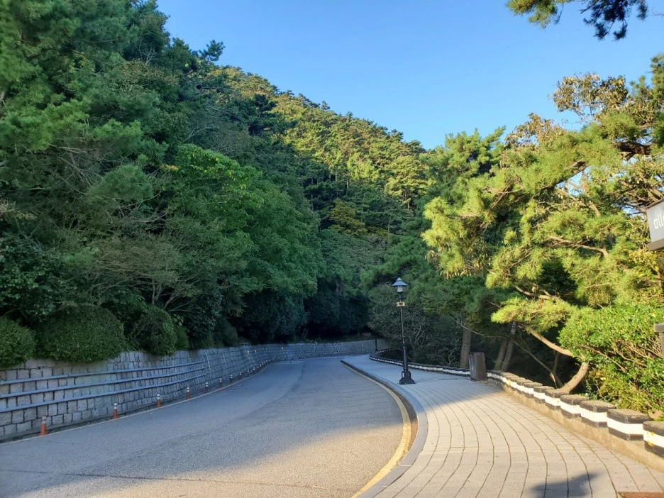 태종대 전망대에 도착하니 쭉 뻗은 도로와 울창한 산이 보였다. 한적했다.