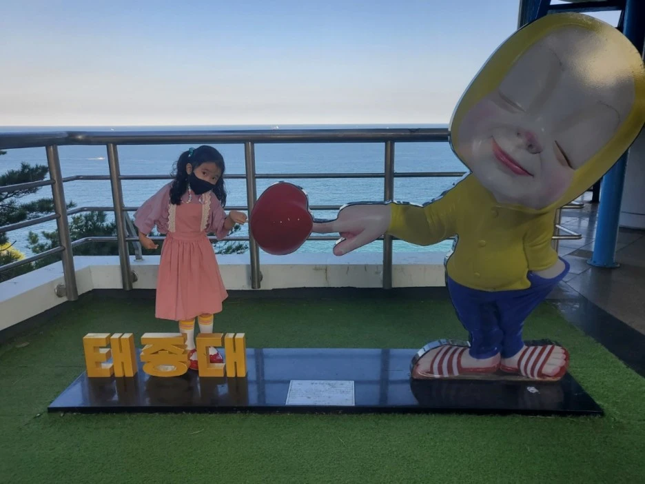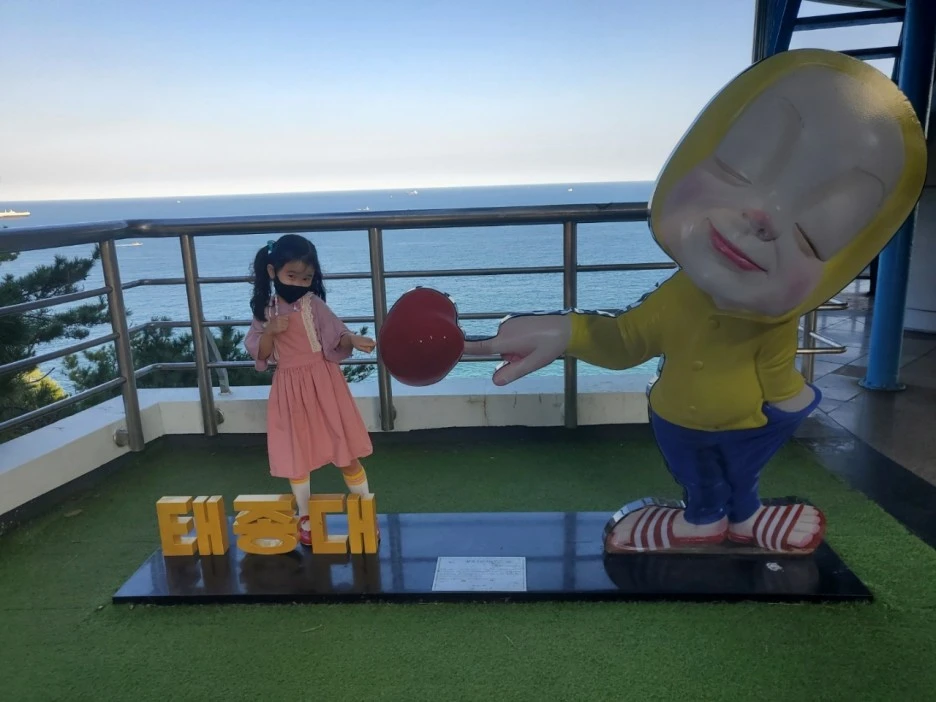 태종대 전망대에서 귀여운 조형물 앞에서 여러 표정을 짓는 아이가 어찌나 귀엽던지..