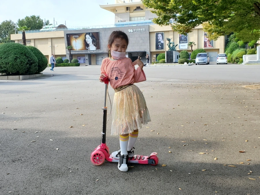 버스는 두 번 갈아타지만, 먼 거리가 아니라서 자주 오곤 하는데 아파트 근처에서는 킥보드 타기가 위험하다.