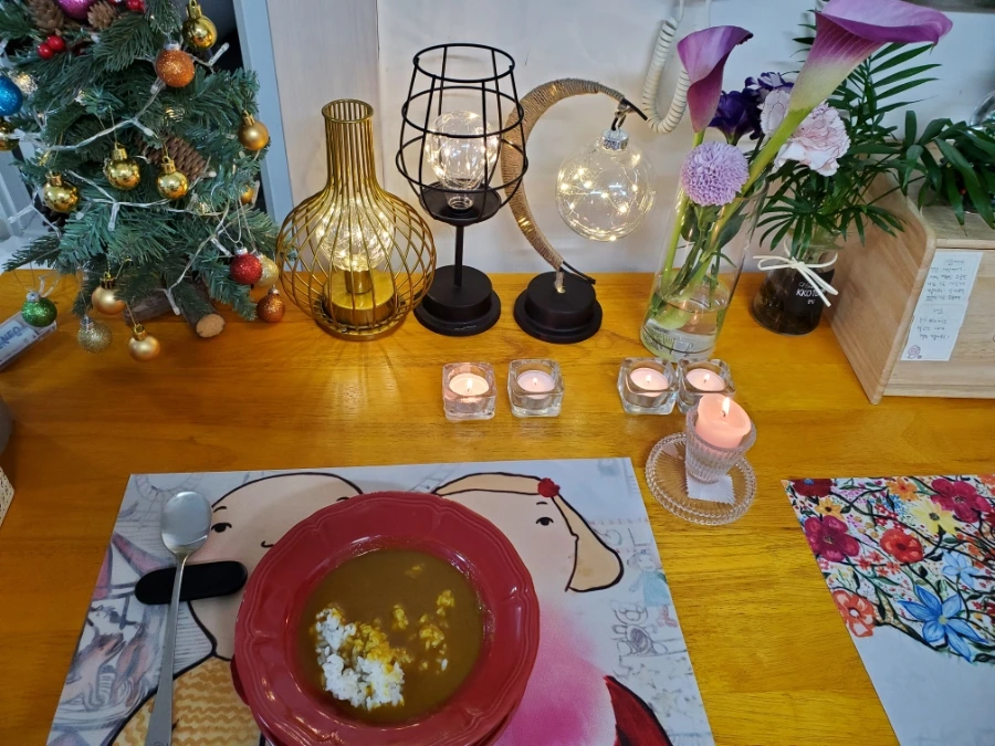 양초와 감성 램프로 더없이 행복한 크리스마스이브를 보냈다.