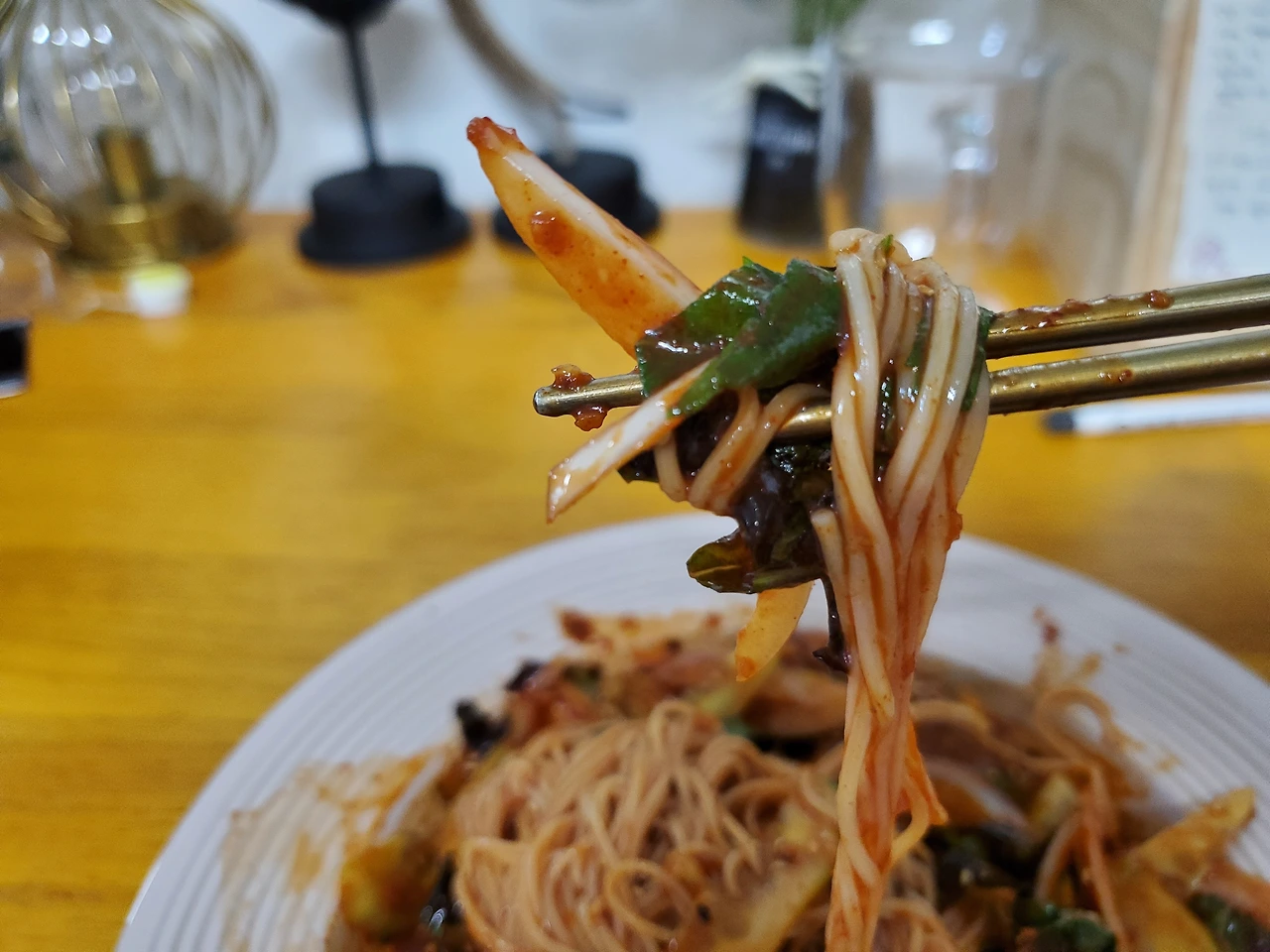 오도독 씹히는 골뱅이와 아삭한 오이를 함께 먹을 수 있다. 고소한 참기름 한 방울로 감칠맛은 극에 달한다.