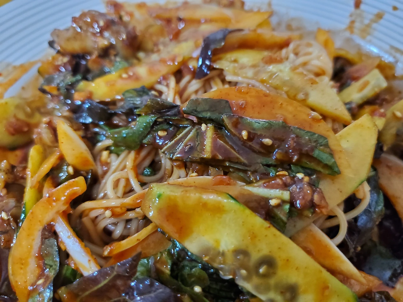 양념장을 넉넉하게 만들어야 소면도 비벼 먹을 수 있다.