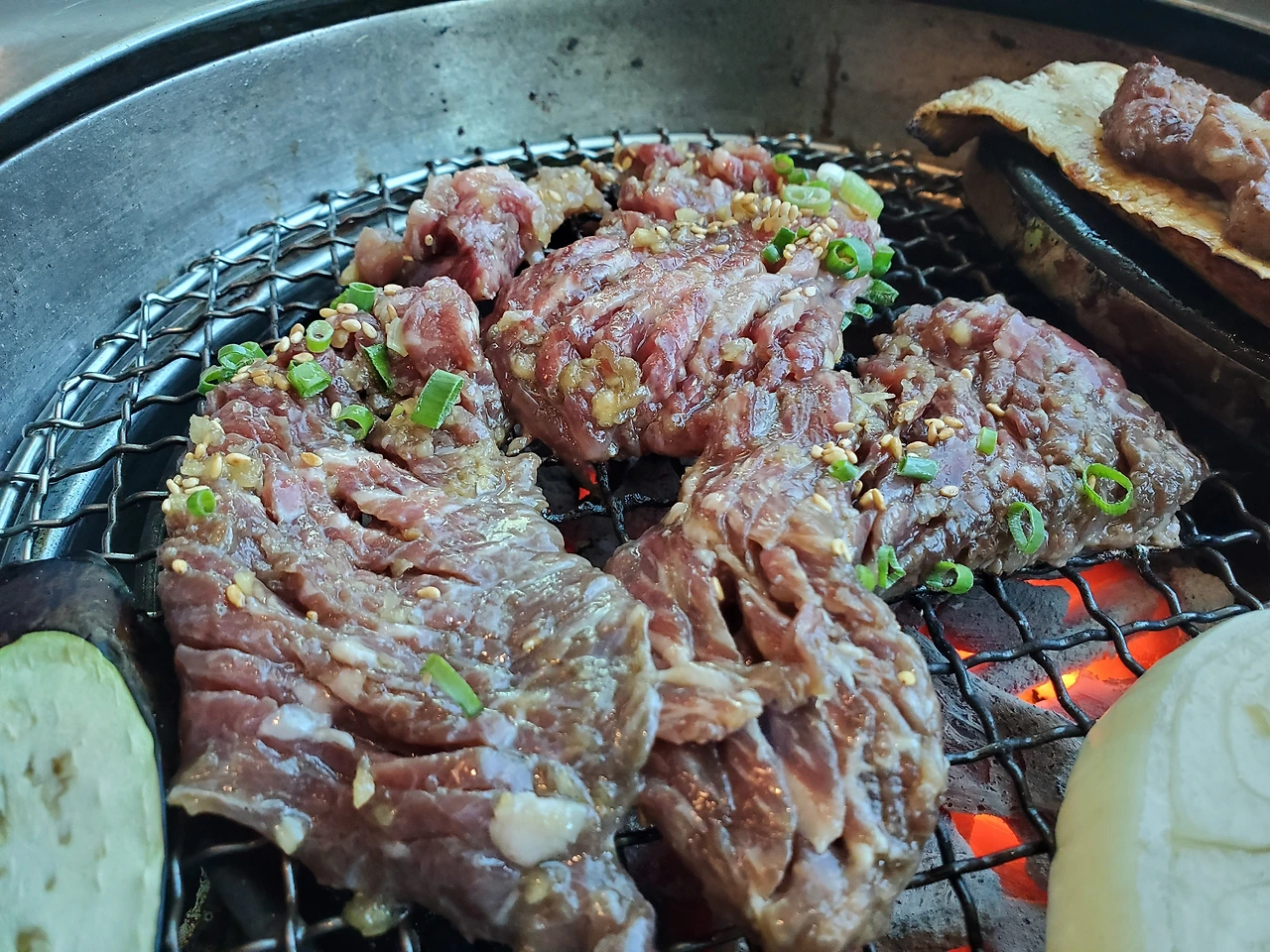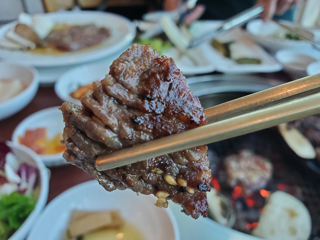양념 소고기. 한우가 아닌 수입산이지만 가격은 비쌌다. 야들야들한 고기 한 점으로 오후를 맞이했다.