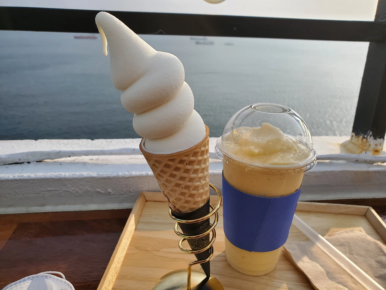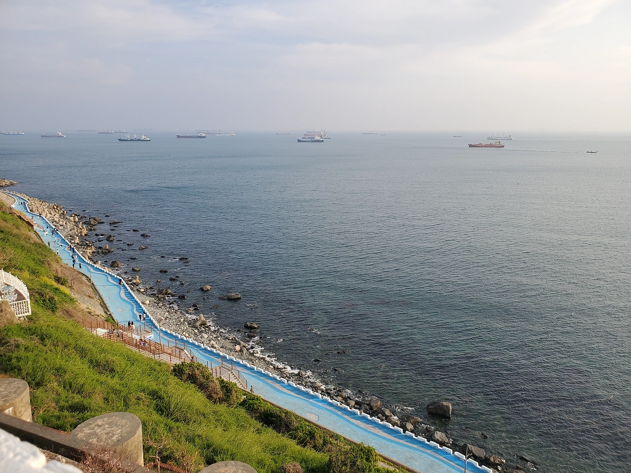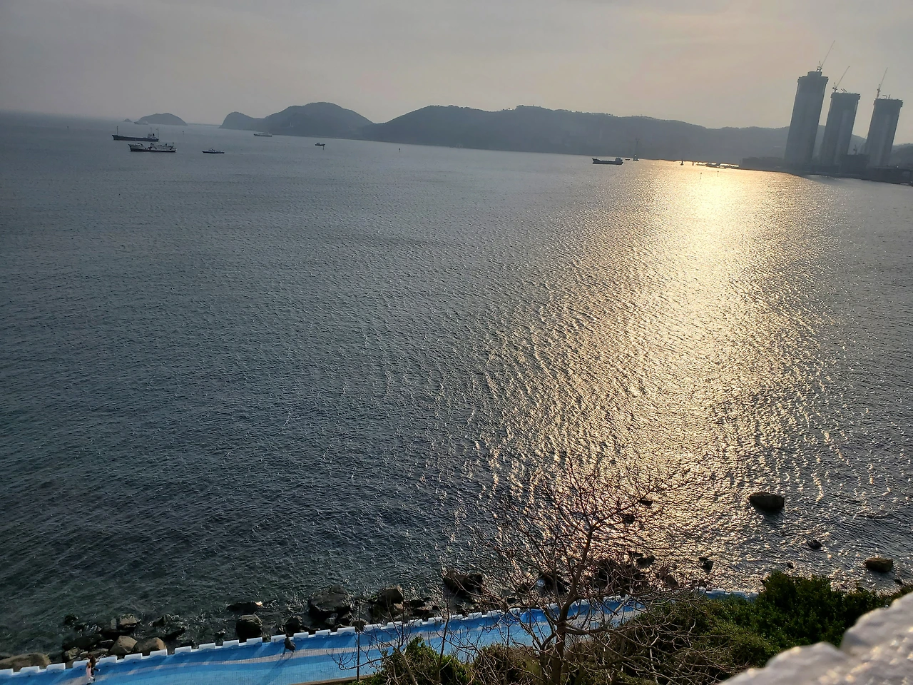 이 날은 구름이 많은 오후라서 지는 해를 제대로 볼 수 없었지만 광활한 바다 아래 석양빛이 조금씩 물들고 있었다.