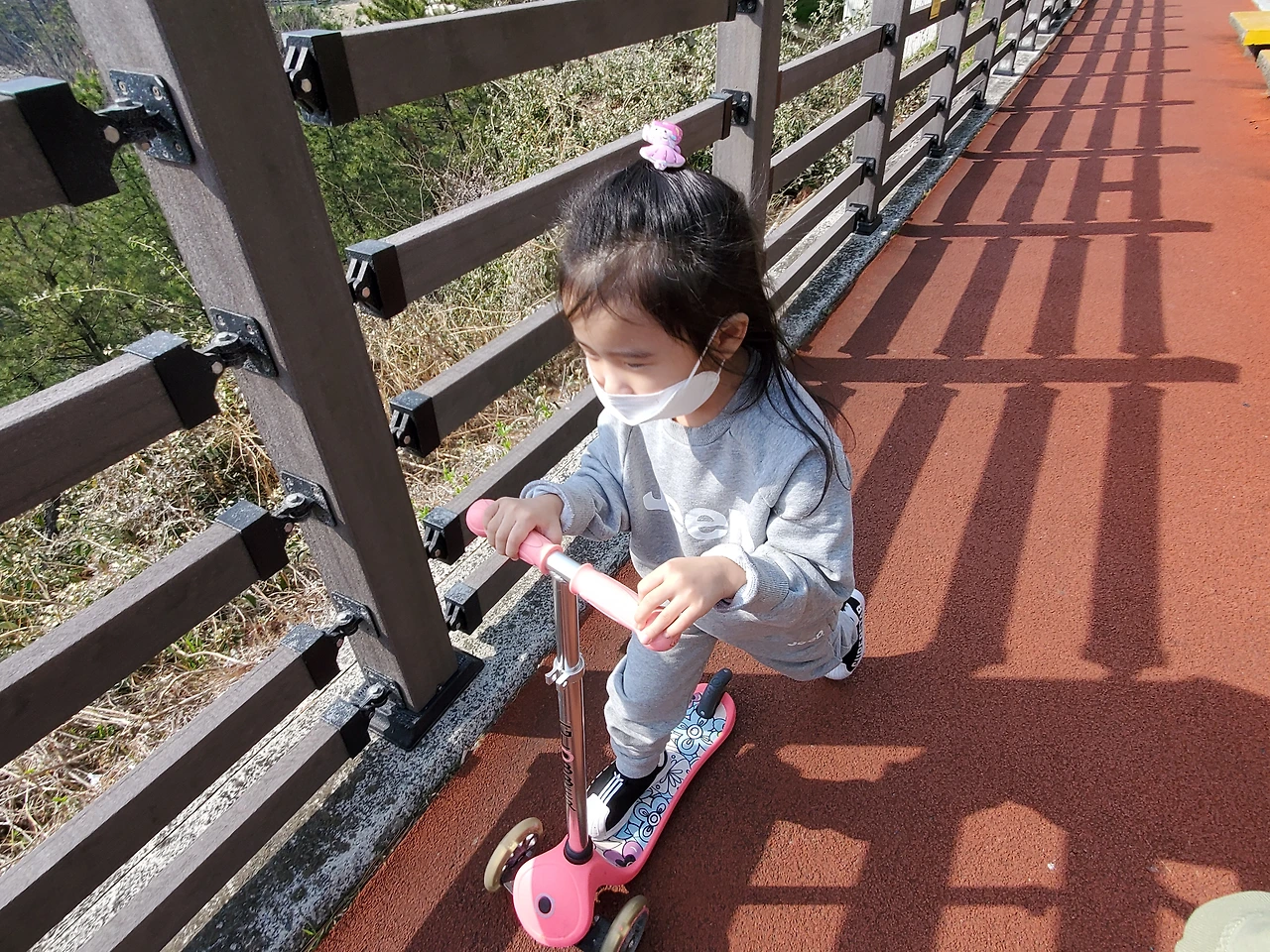 킥보드 타는 요령을 몰라 직진만 하는 아이는 샛길로 빠지는 킥보드를 멈추고 자신이 원하는 방향으로 밀고 가는 모습에 킥보드 운전하는 것처럼 너의 인생은 네가 원하는 방향대로 주도적으로 움직였음 하는 바람과 믿음으로 아이 뒤에서 지지하고 응원해야겠다고 다짐했다.