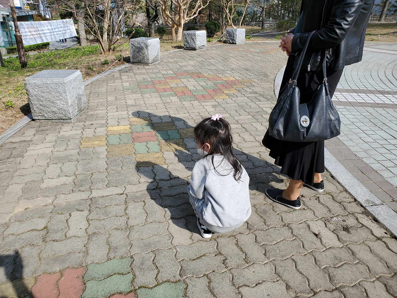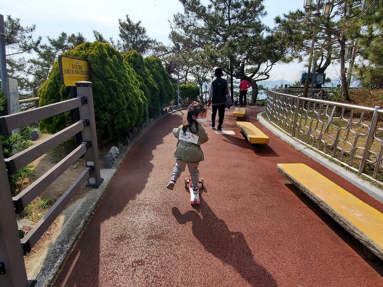 엄마와 할머니가 오나 안 오나 확인하면서 킥보드를 타고 있는 아이는 신이 났다.