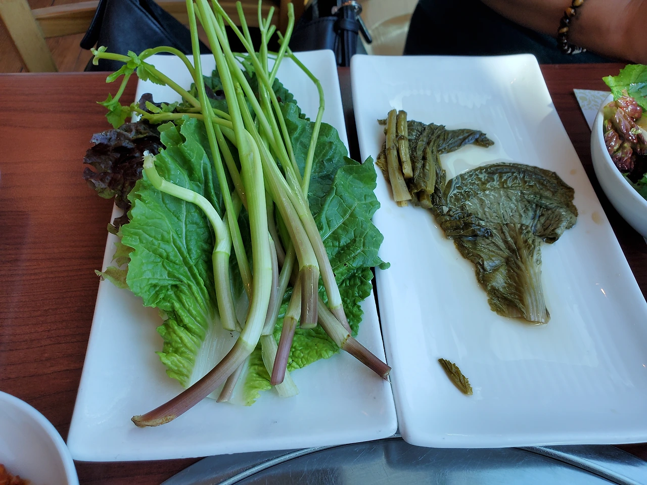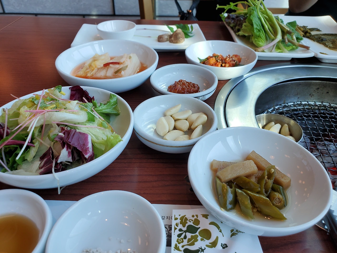 가짓수는 많지만 고기와 먹을 수 있는 찬들뿐이었다. 주로 장아찌류...