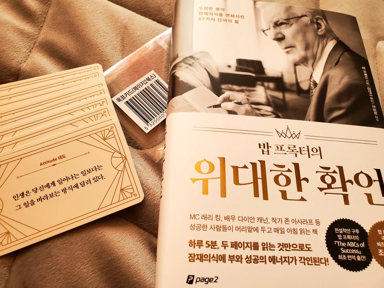 어제는 이벤트에 당첨되어 책을 받았어요. 요즘 뜨고 있는 책 '밥 프록터의 위대한 확언' 조성희 마인드 파워님이 이벤트를 진행하셨거든요. 2년 전부터 이벤트에 참여하지 않다 이거는 꼭 해야겠다는 생각이 들더군요. 그렇게 사심 가득한 나의 욕망을 내비치고 확언이 안되었던 그날을 회상하며 댓글을 달았죠.