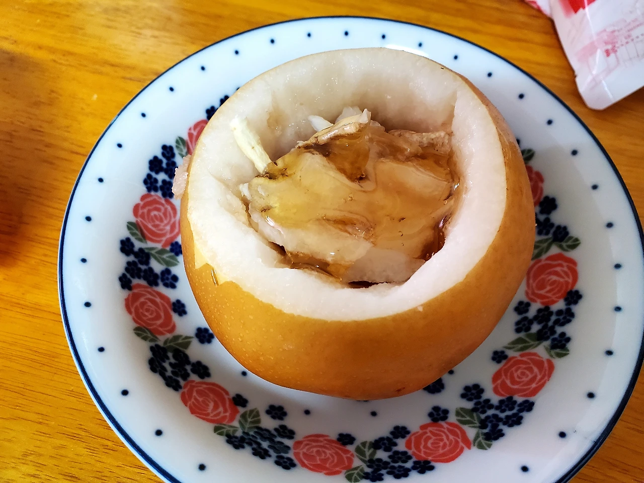 조선시대는 약이 없었잖아요. 민간요법으로 왕을 보좌했다고 하니 얼마나 효과가 크겠어요. 집에 목감기 약도 없고 민간요법으로 하루에 한 번 정도 배숙을 마시게 했는데 확실히 효과가 있는 듯했어요. 심한 기침을 막을 수 있었고 아프다고 한 목은 차츰 좋아졌죠.