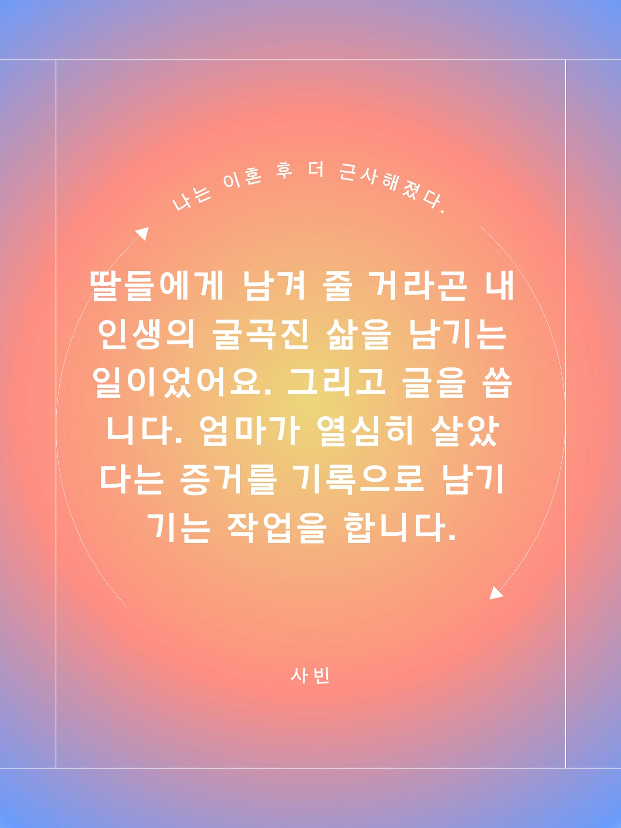 이혼 그 무거운 단어가 힐링이 되도록 책에 실었어요
