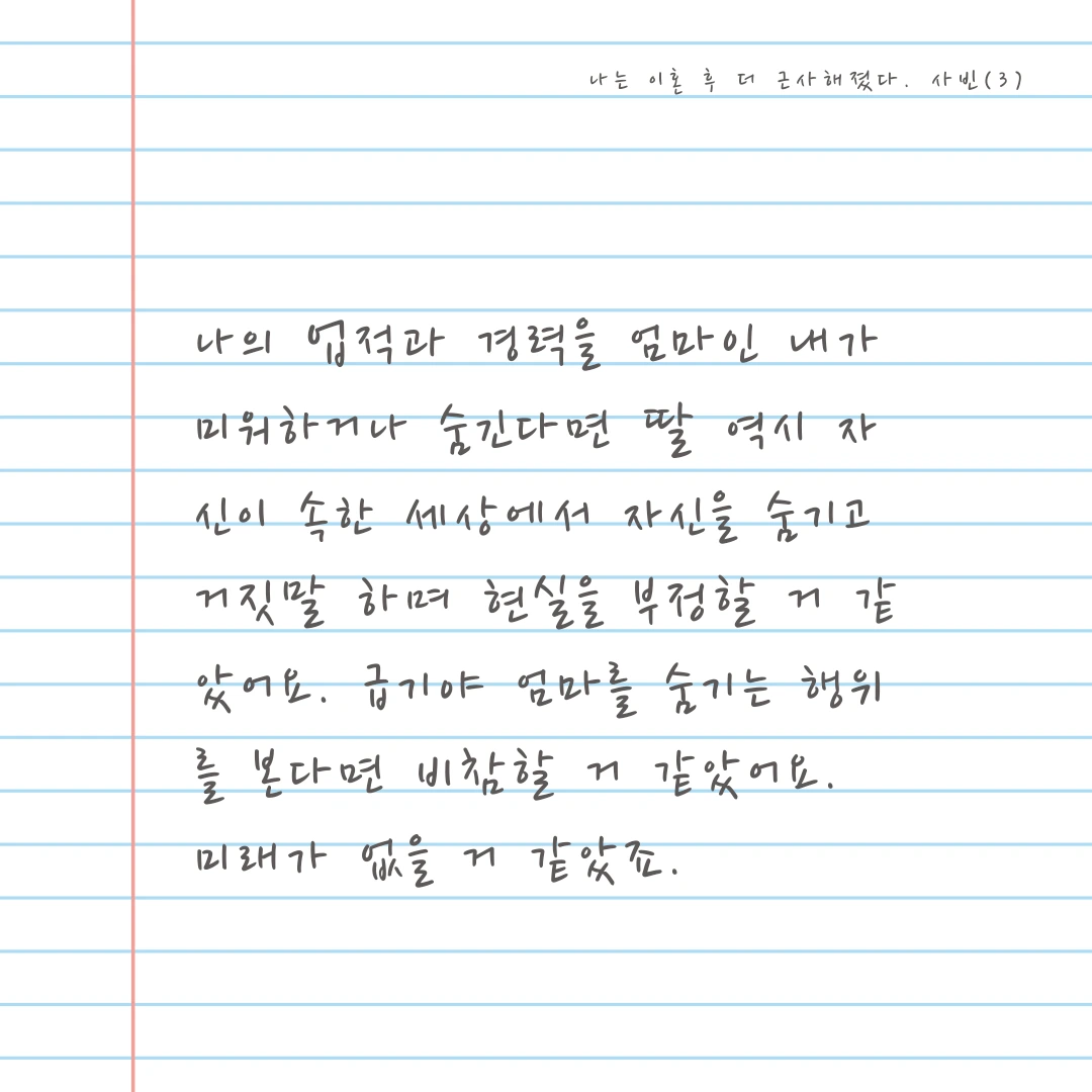 필사적으로 노력한 엄마 모습을 볼 때마다 이해가 되지