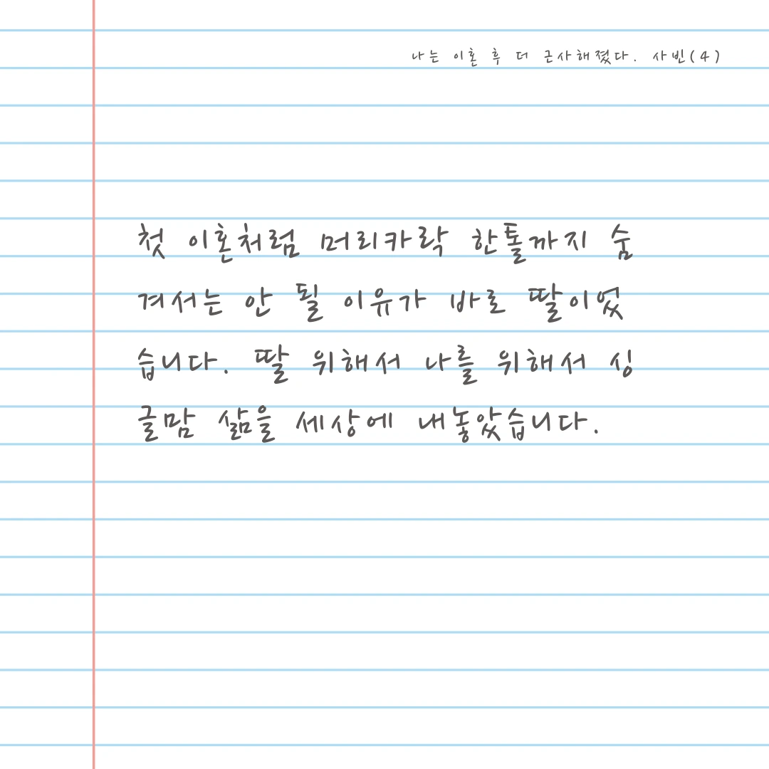 이혼했다고 좌절하거나 우울해하며 보낼 시간이 없었어요.