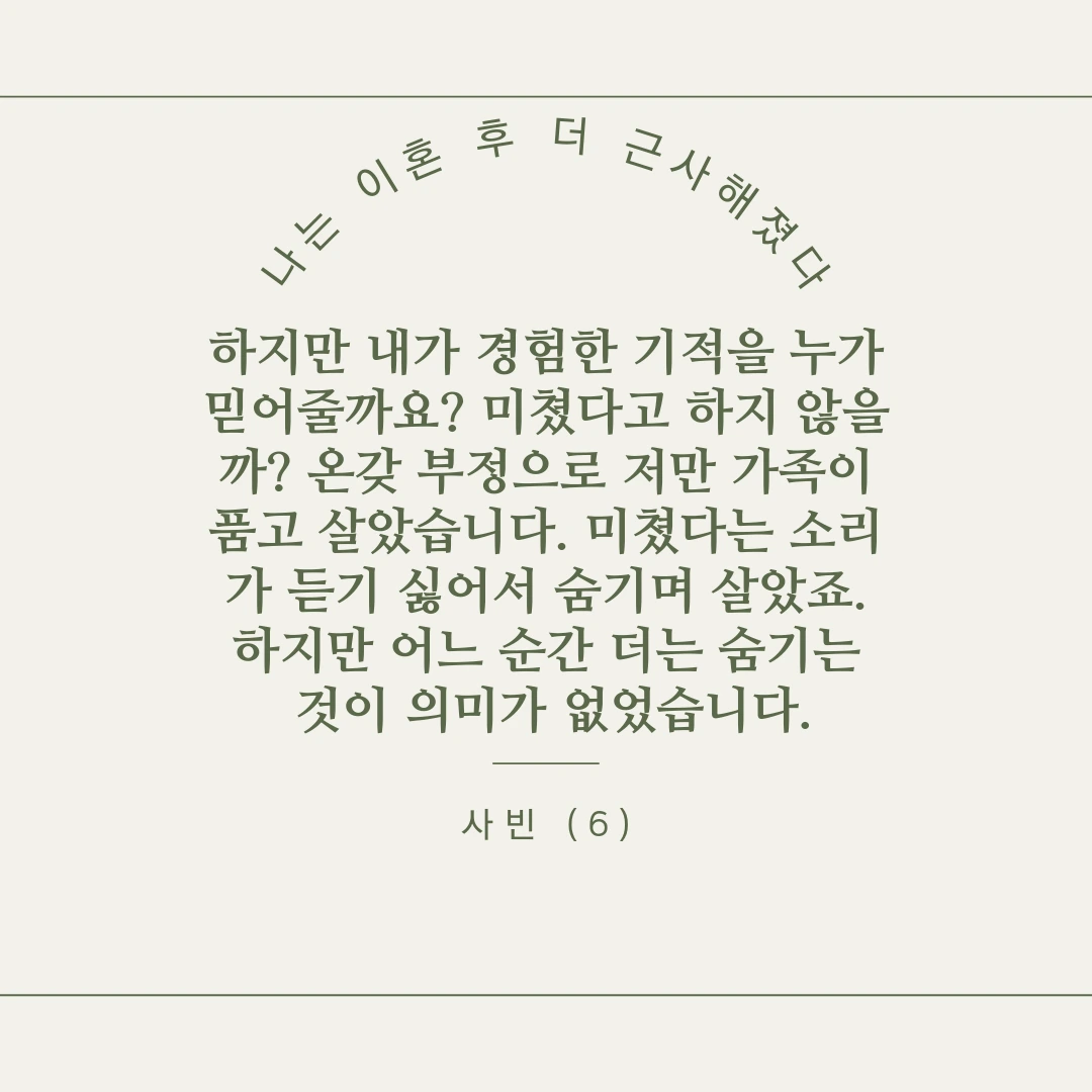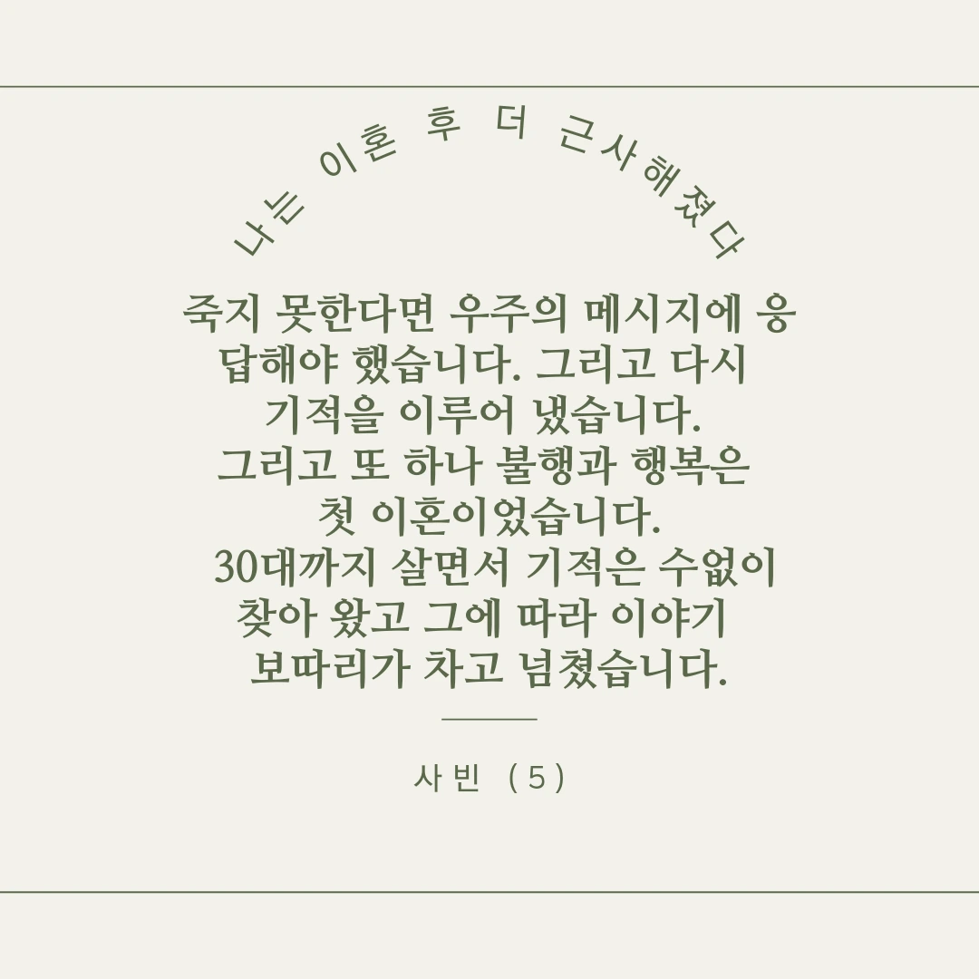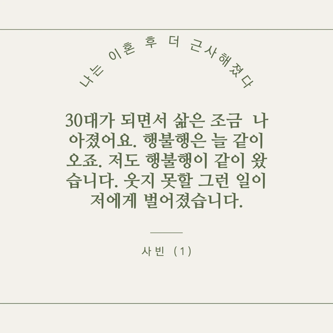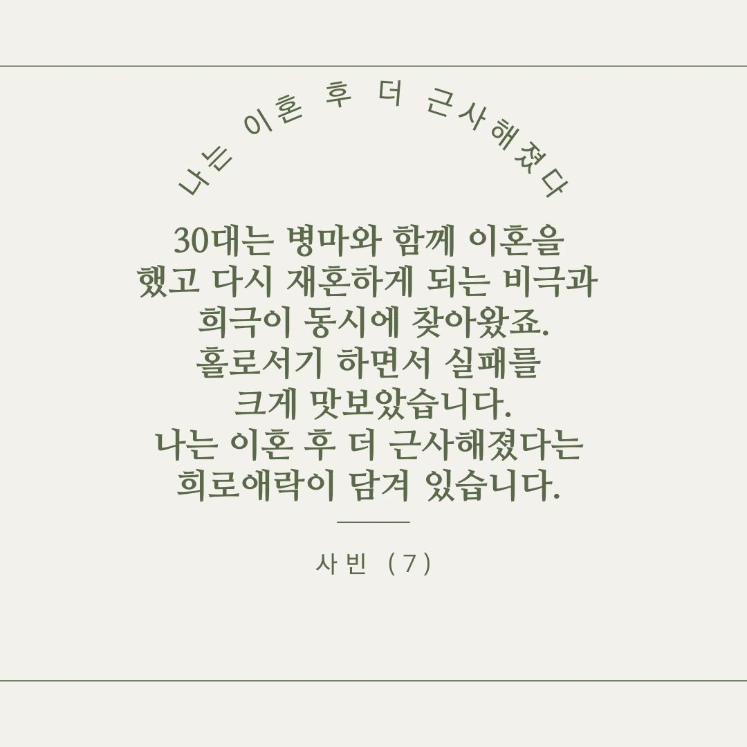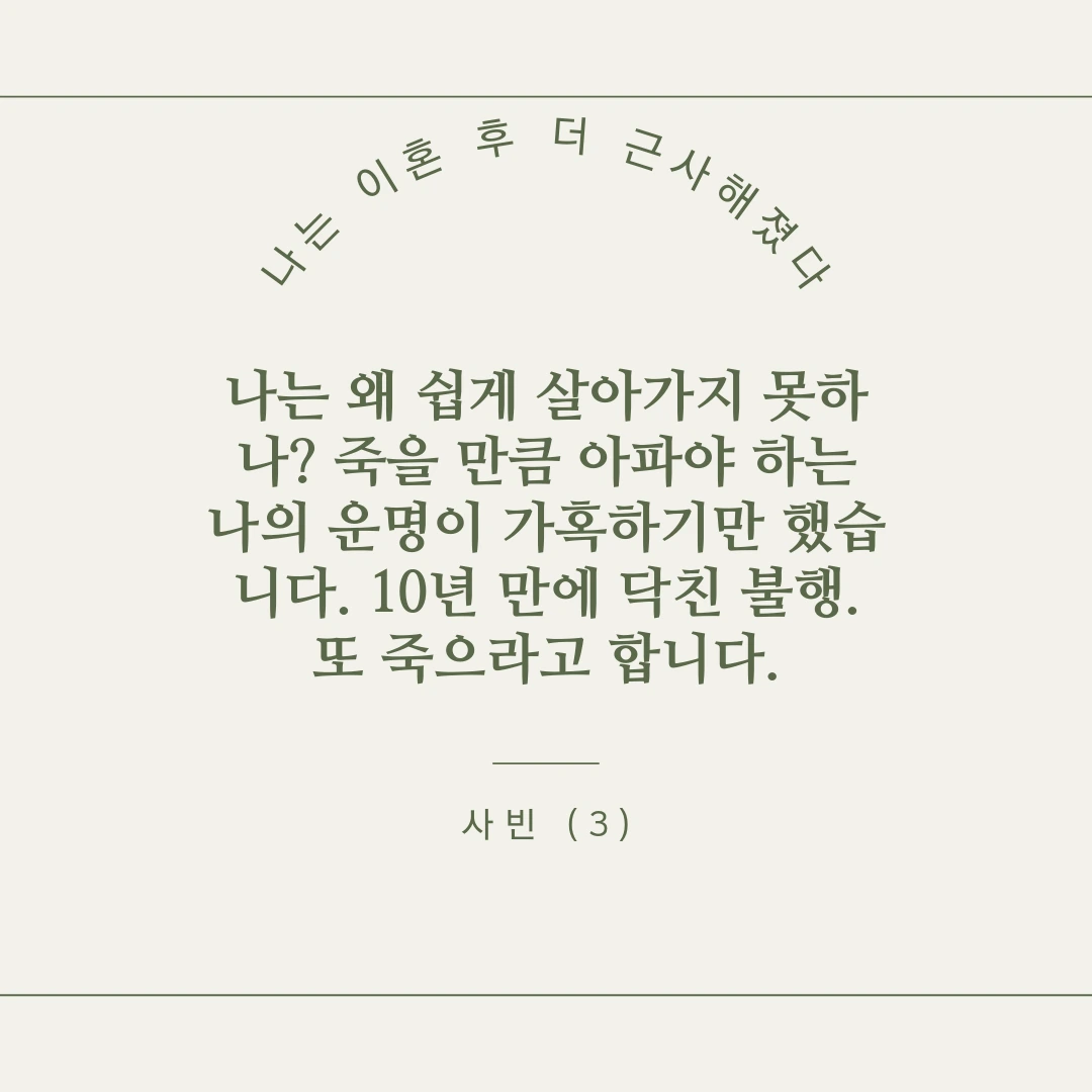 누구나 겪을 수 있는 인생의 한 부분을 세상에 내놓은 것입니다.
