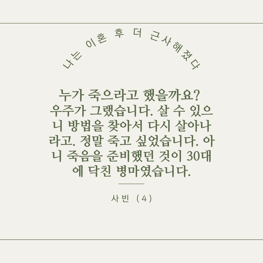 20대, 6개월 투병 끝에 찾아온 고요함이었어요.