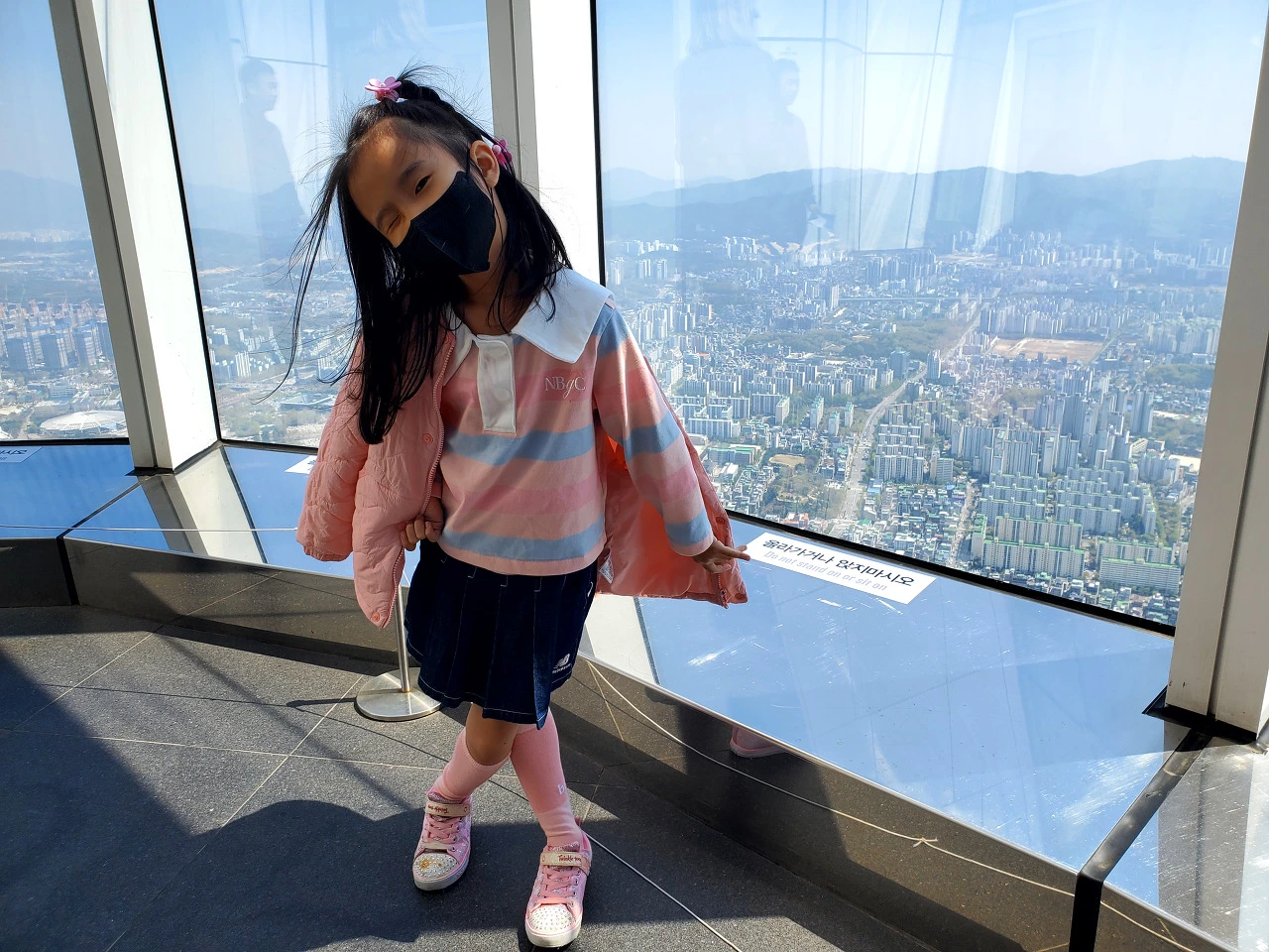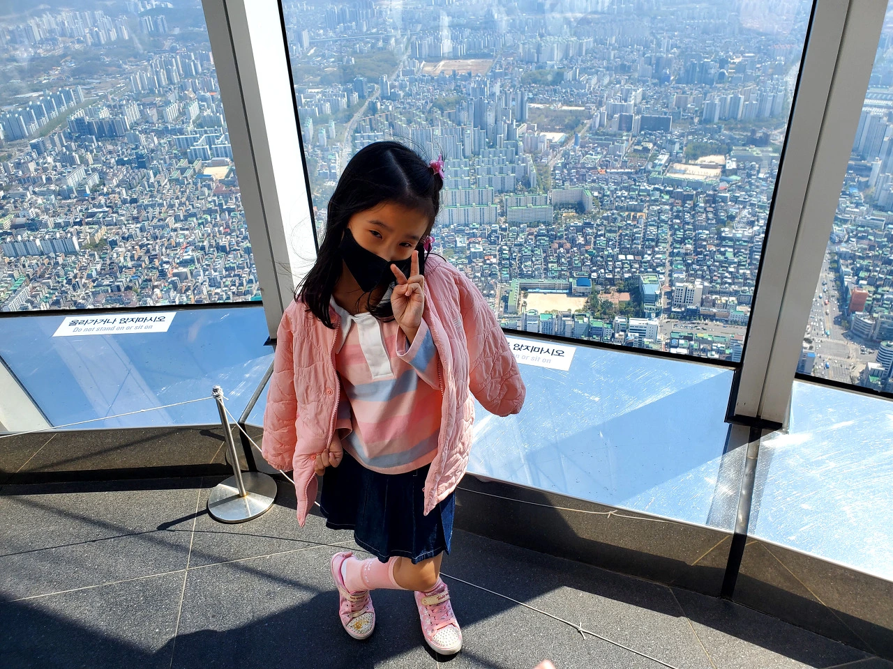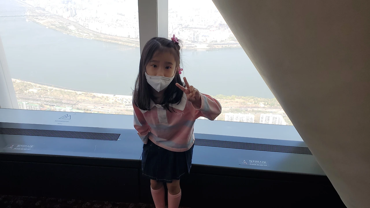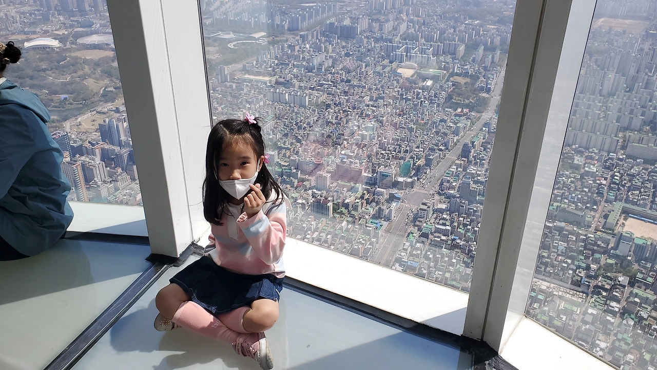 스카이 서울 그러니깐 전망대에서 아이만 있는 사진뿐