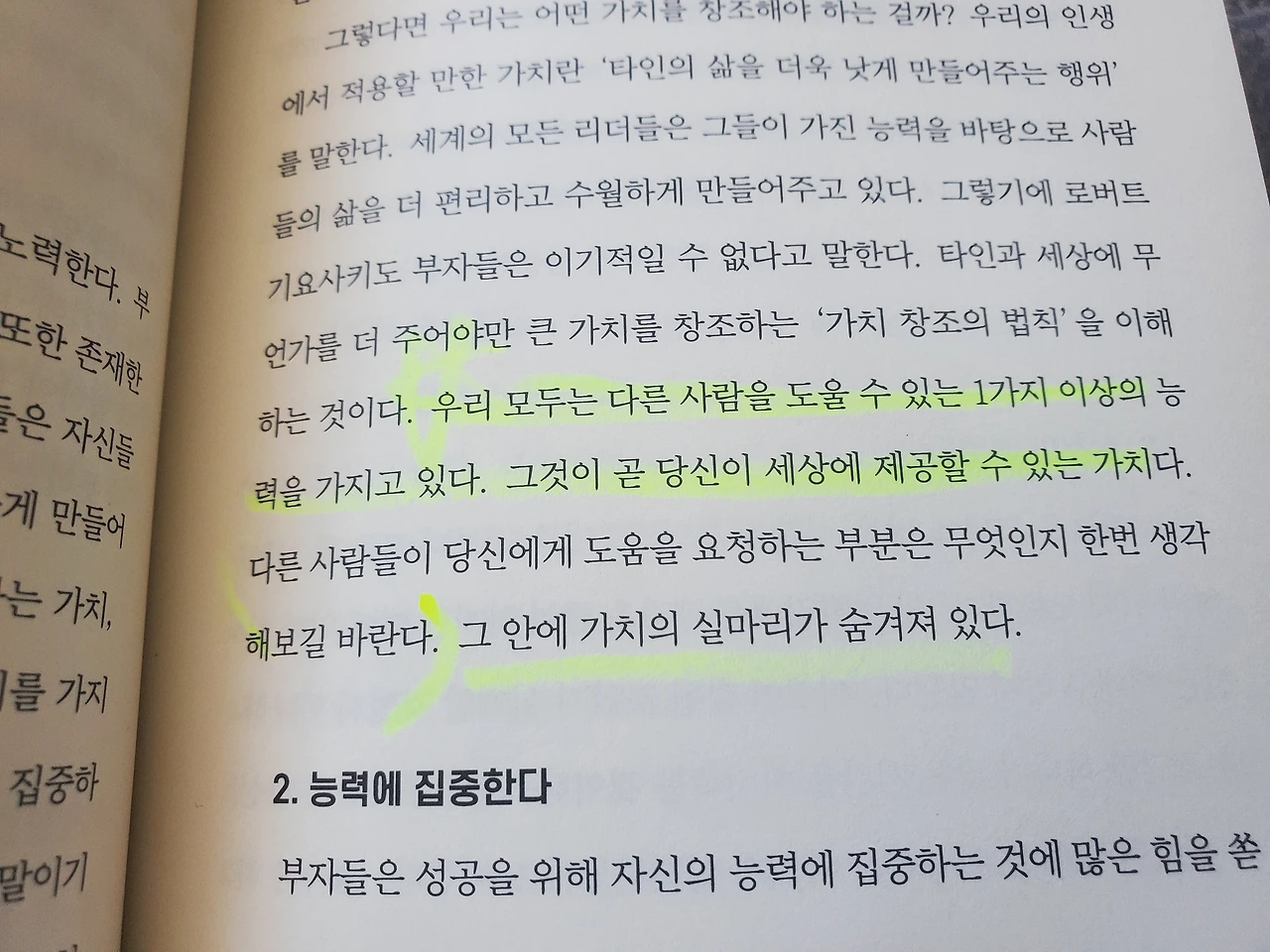 우리 모두는 다른 사람을 도울 수 있는 1가지 이상의 능력을 가지고 있다. 그것이 곧 당신이 세상에 제공할 수 있는 가치다.