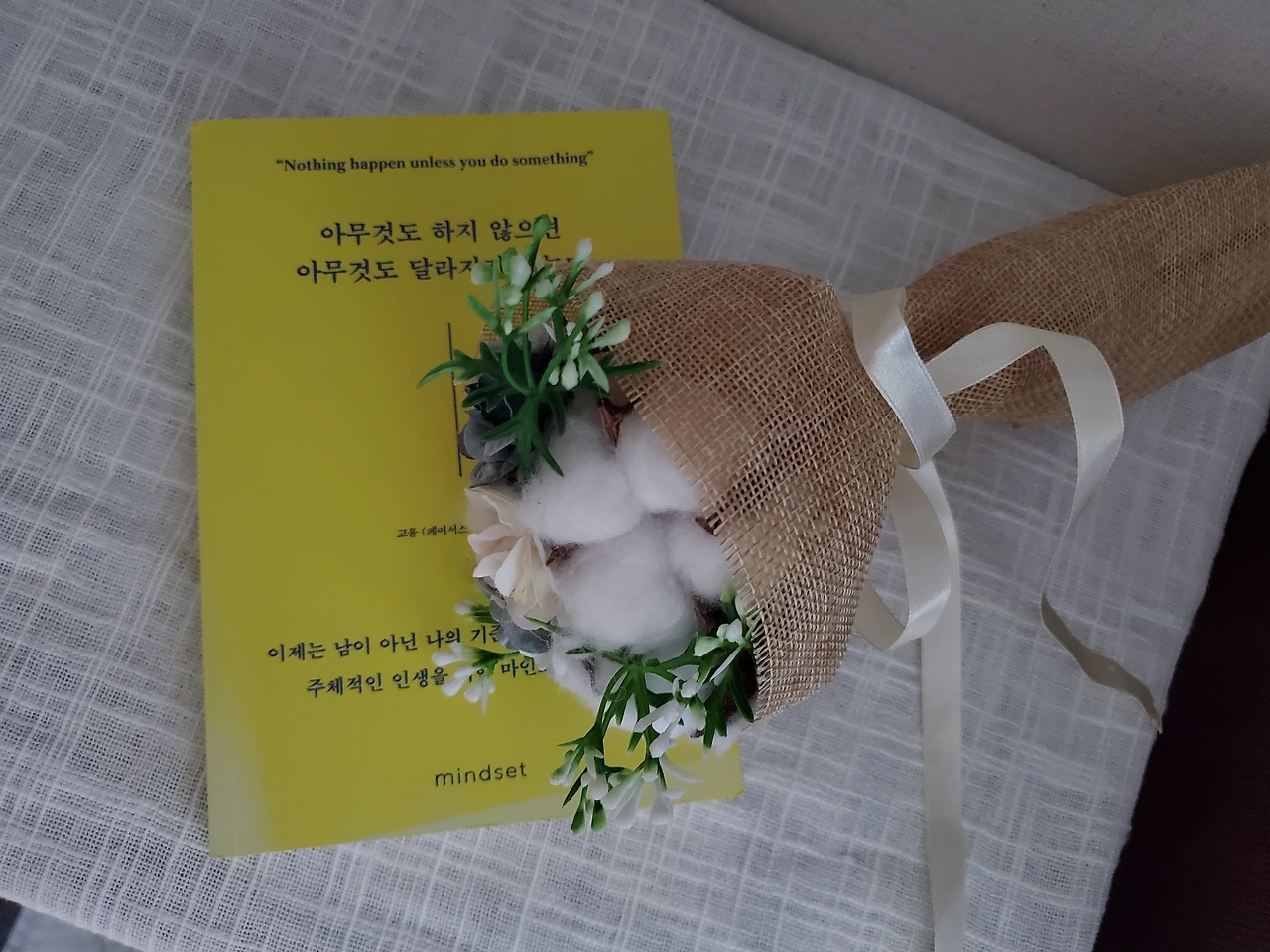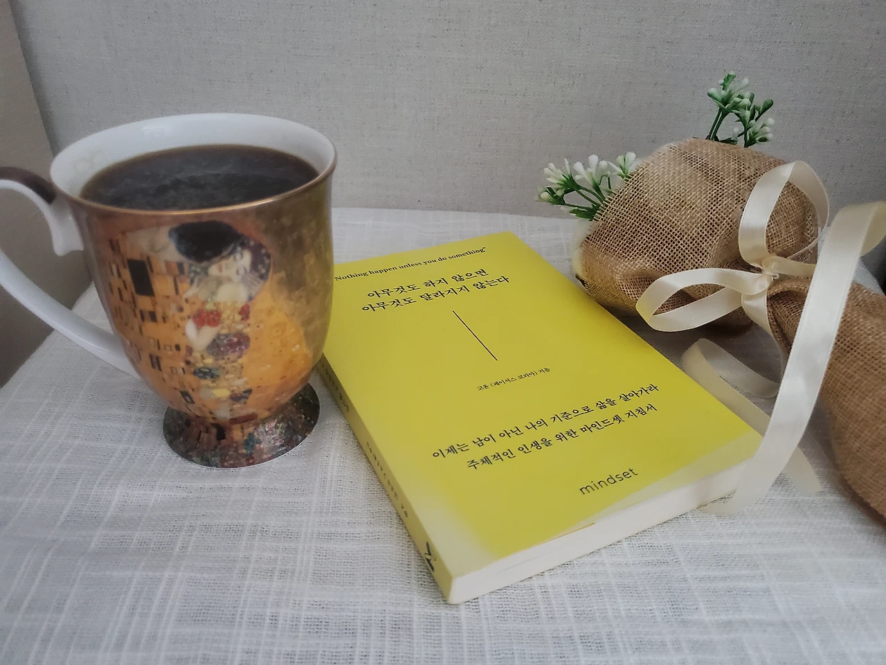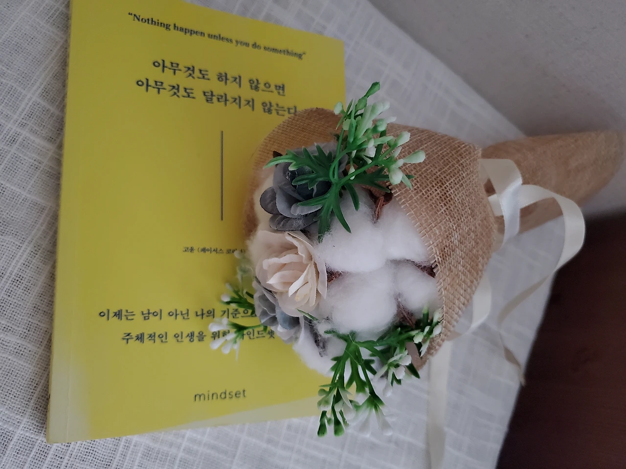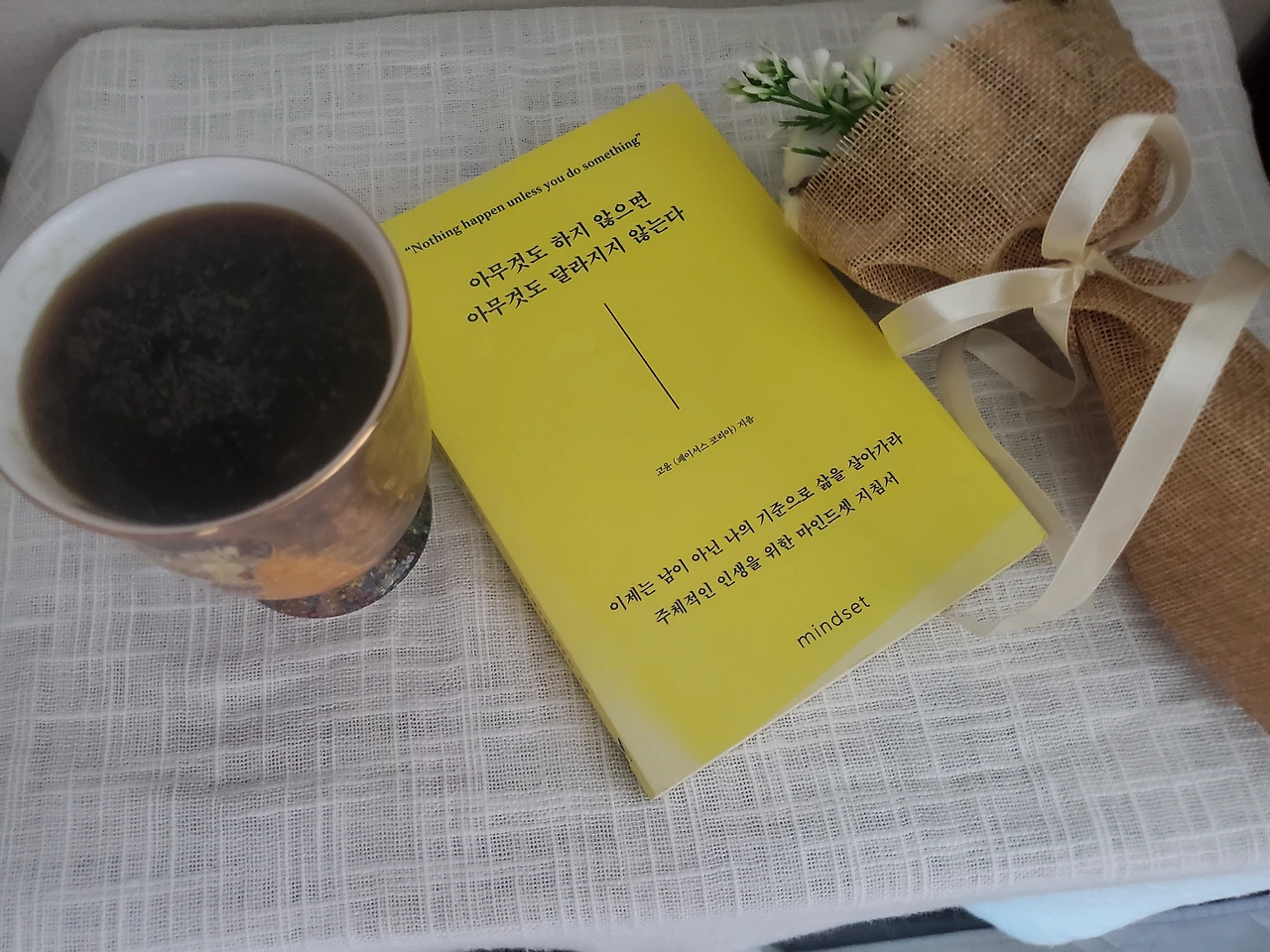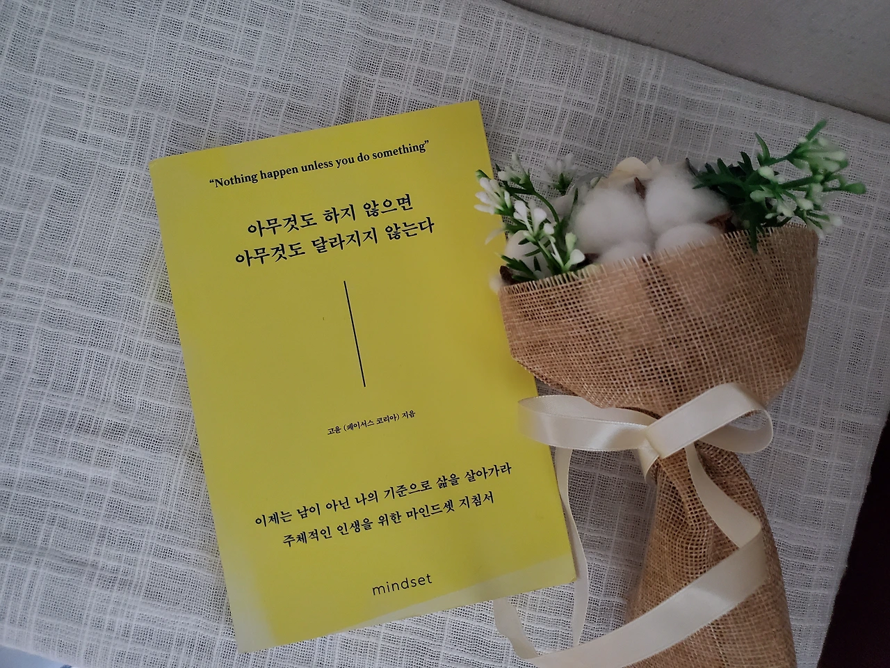 오늘 소개할 책은 「아무것도 하지 않으면 아무것도 달라지지 않는다」 예요. 반쯤 읽다 새로운 책을 꺼내 읽었던 모양이에요. 읽다 만 부분에 책갈피가 이쁘게 꽂혀 있었어요.