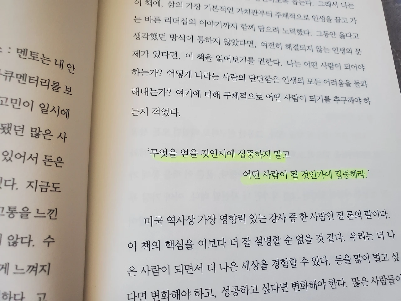 → 무엇을 얻을 것인지에 집중하지 말고 어떤 사람이 될 것인지에 집중해라.