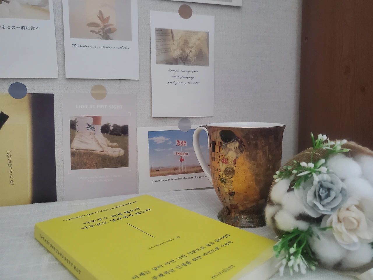 아침에 인테리어 용 엽서를 꺼내어 나만의 공간에 연출했는데요. 아직 미완성 같죠. 하다 보면 저도 모르게 연출하는 방법을 터득할 거라 믿어요. 어디에 사진 찍는 강의나 연출 방법 알려주는 강의가 있다면 저는 두 손 벌려 환영하고 배울 거 같아요.