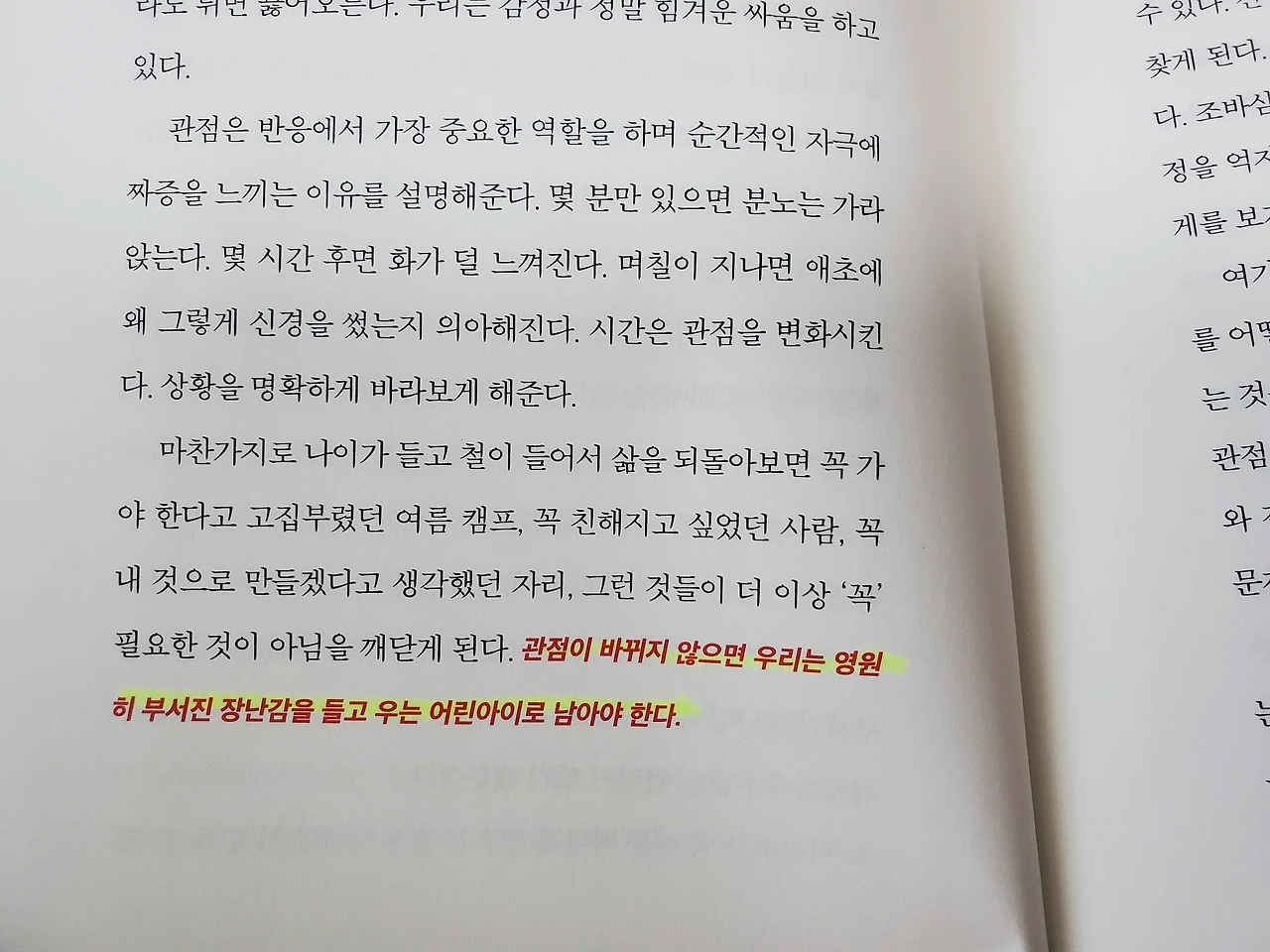 관점이 바뀌지 않으면 우리는 영원히 부서진 장난감을 들고 우는 어린아이로 남아야 한다.