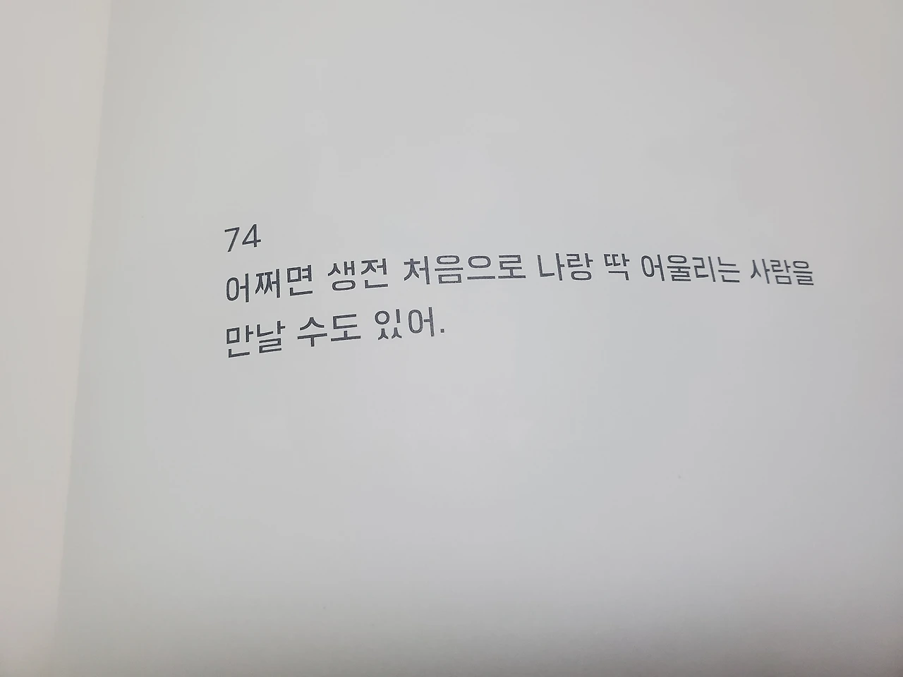 좋은 사람 말고 나와 맞는 사람을 만나야 인생을 함께 갈 수 있어요. '어쩌면 생전 처음으로 나랑 딱 어울리는 사람을 만날 수도 있어.' 문장은 저의 가슴을 설레게 했어요.