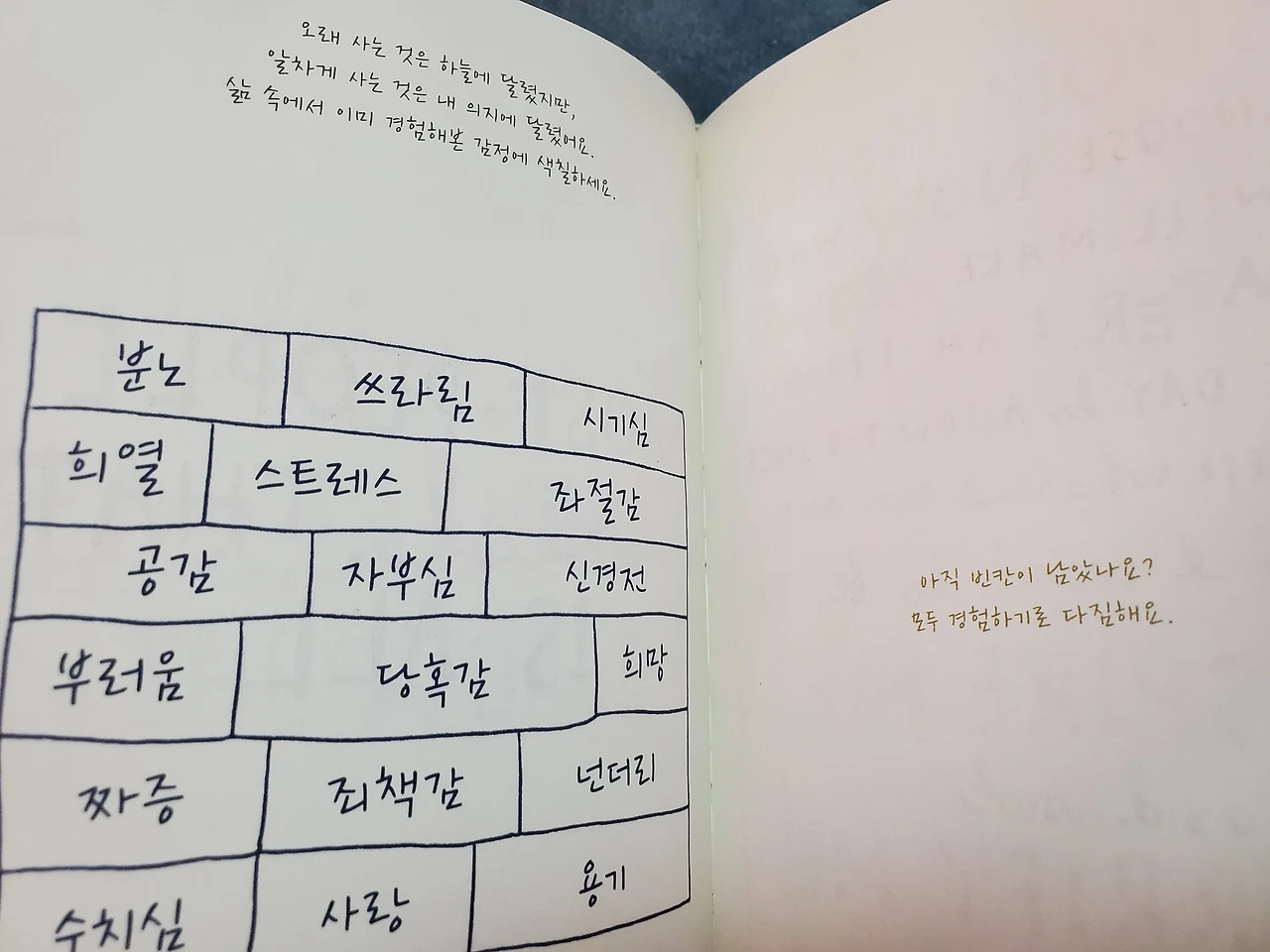 중간중간 나조차 답할 수 없는 질문에 어찌나 당혹스럽던지요. 이로써 질문으로 나를 더 깊게 알게 된 책이기도 해요.