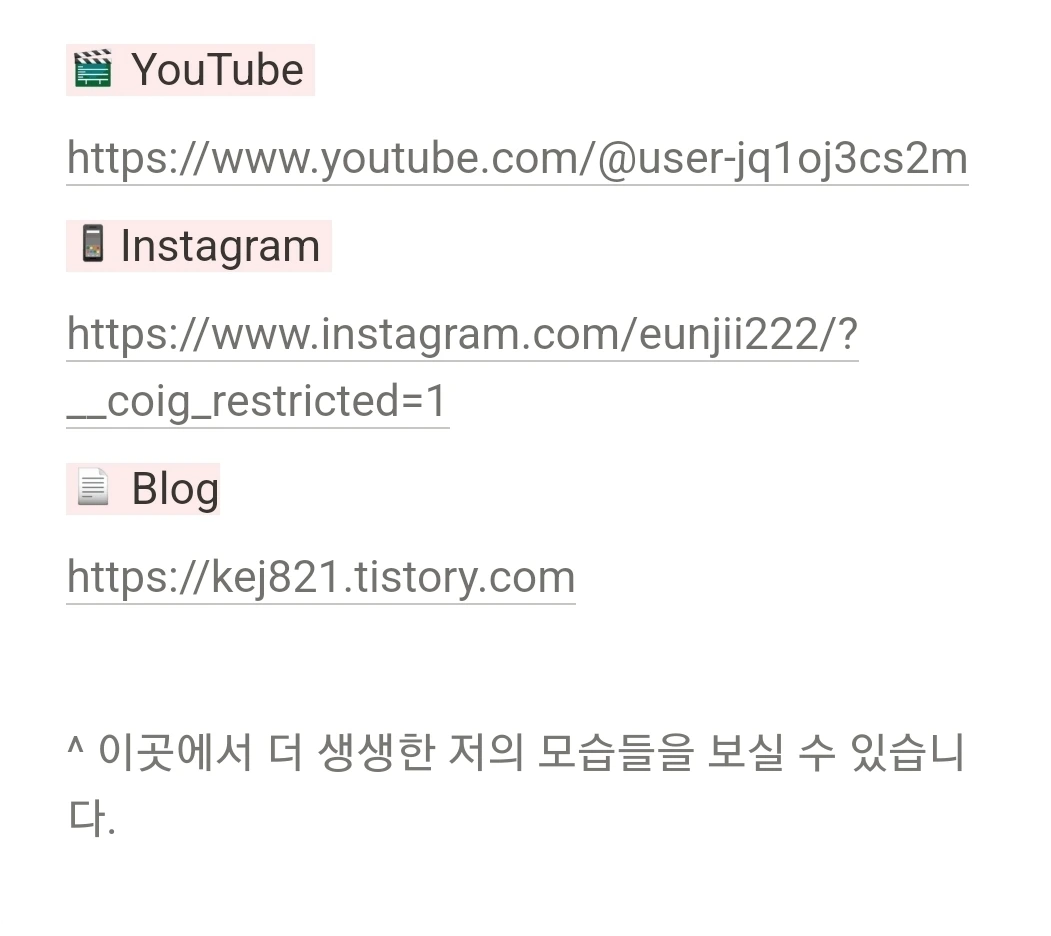 여기까지는 본인 채널과 sns 소개했고요. 어떤 마인드로 어떻게 살고 있는지 볼 수 있는 공간이죠. 판단은 여러분들이 하면 됩니다.