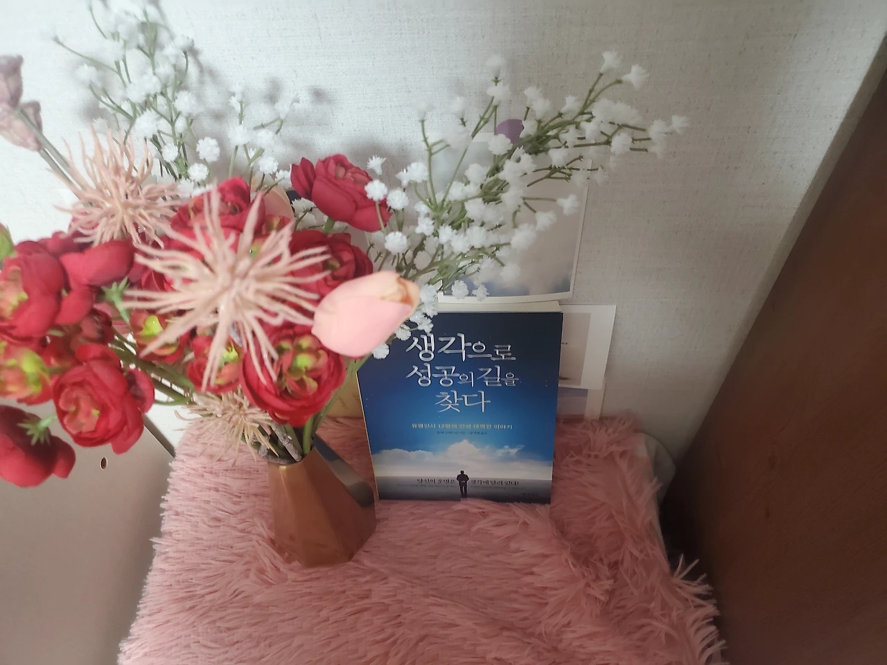 궁금하고 질문이 받은 책이 될듯해요. 어제 딸의 학습지 선생님이 오는 날이었어요. 20분가량 수업하는 동안 저는 안방에서 잠시 쉬는데요. 그때 제 눈에 들어온 책이 생각으로 성공의 길을 찾다였어요.