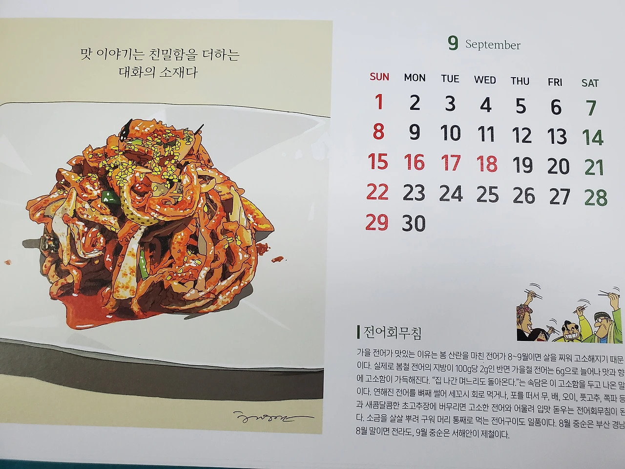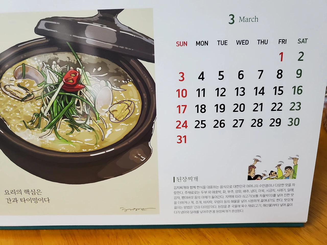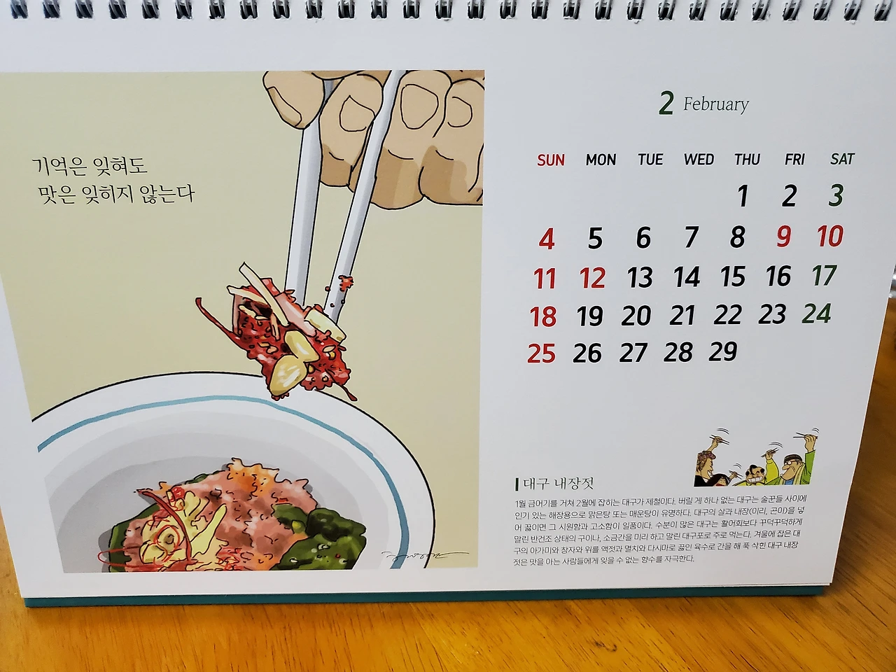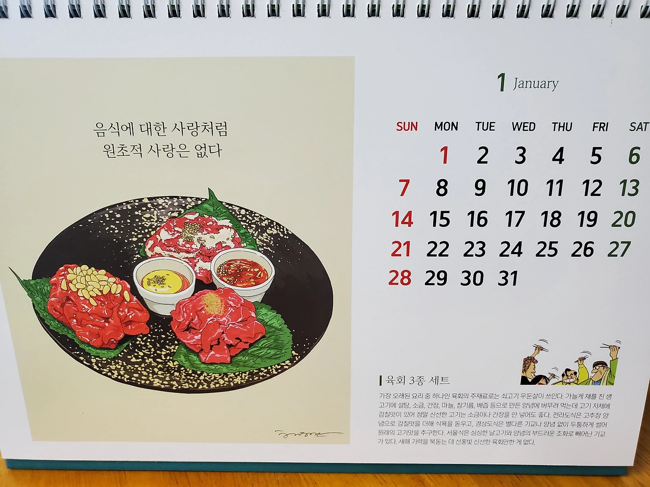 저는 티브이를 보지 않아 잘 모르지만 전국 곳곳 맛있는 음식을 찾아 먹는 프로그램이라는 것쯤 알아요. 매달 어떤 음식을 소개하고 있는지 기대되는 캘린더라고 할까요?