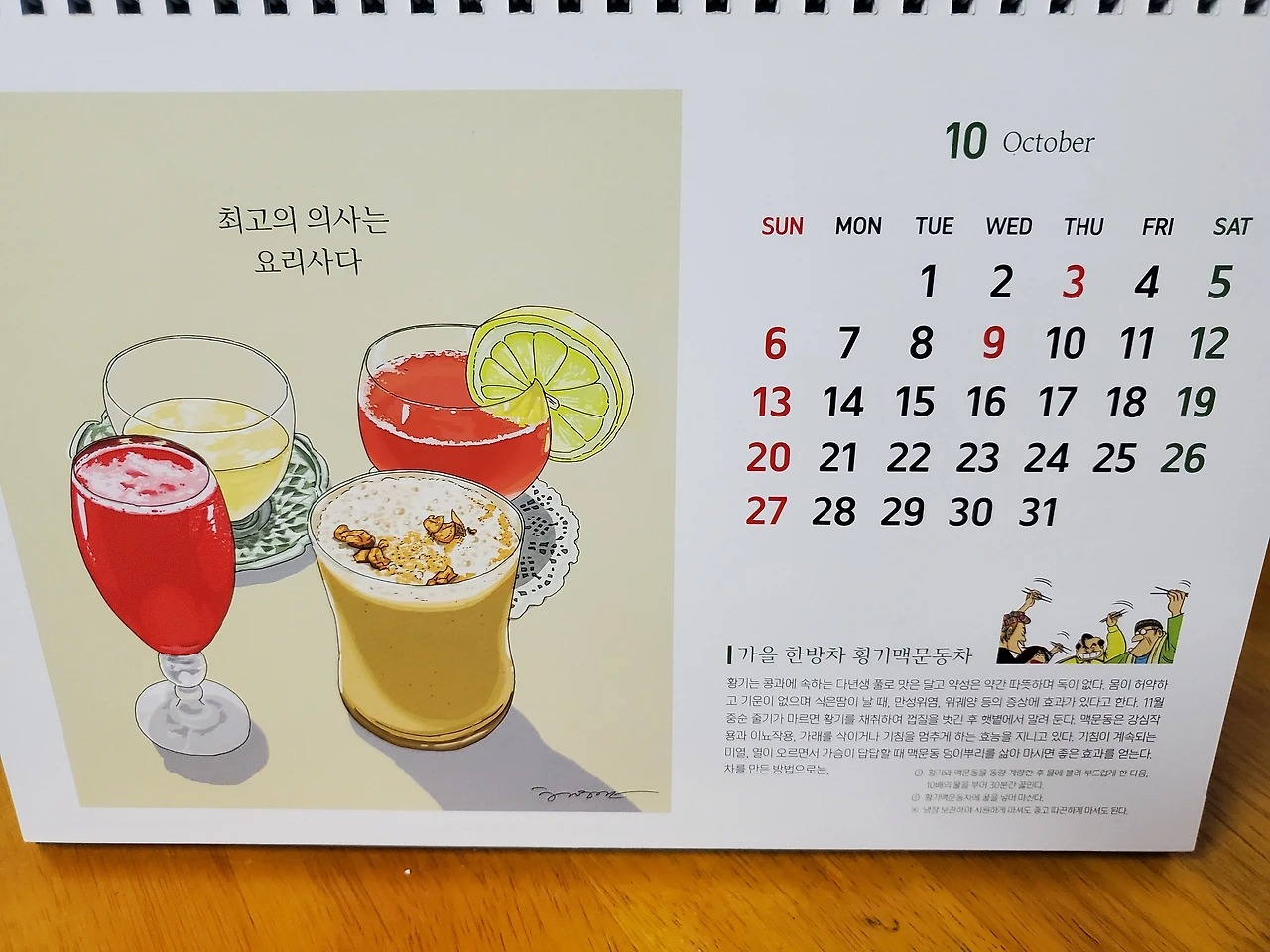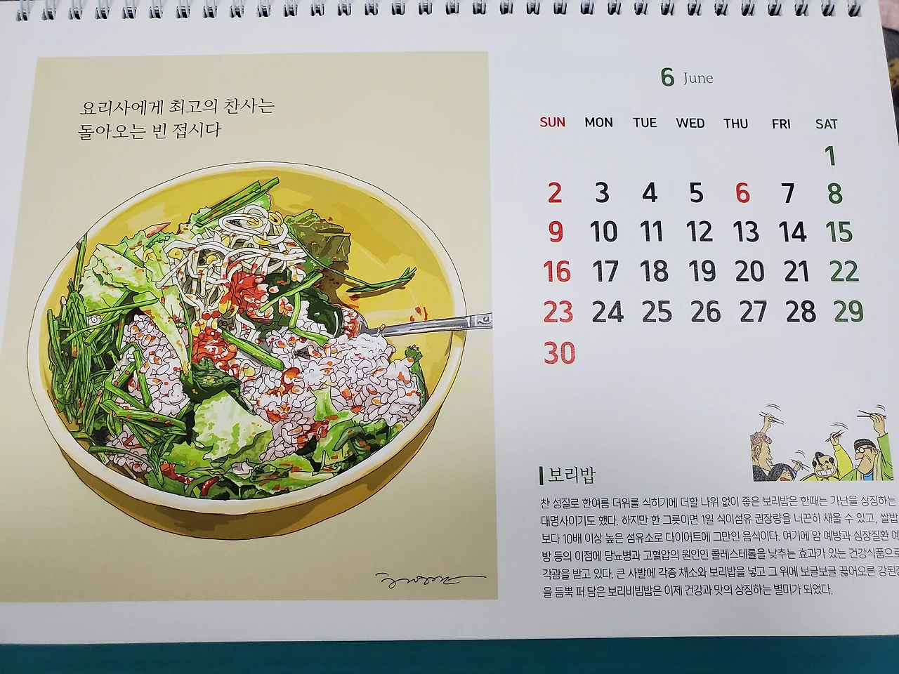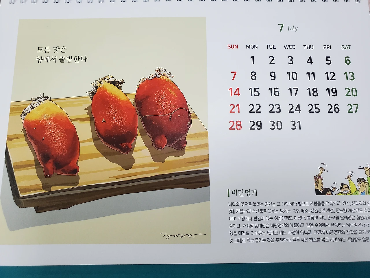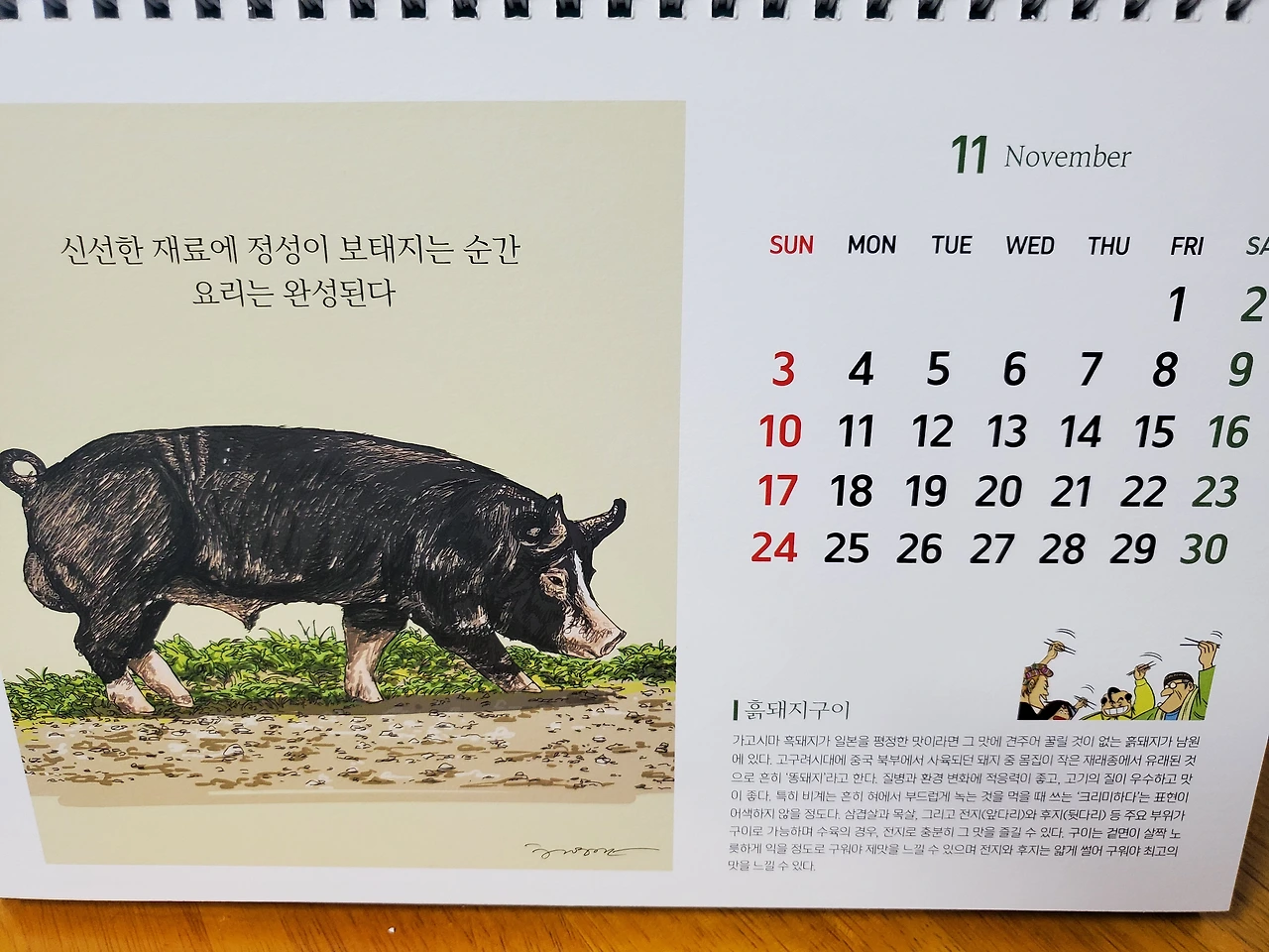 저는 티브이를 보지 않아 잘 모르지만 전국 곳곳 맛있는 음식을 찾아 먹는 프로그램이라는 것쯤 알아요. 매달 어떤 음식을 소개하고 있는지 기대되는 캘린더라고 할까요?