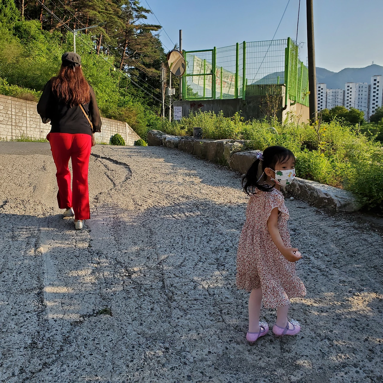 할머니 따라 졸래졸래 걷는 딸.